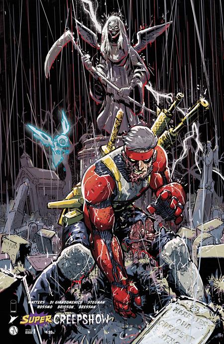 HIS ULTIMATE CREEPSHOW EXPERIENCE IS AN ABSOLUTE MUST-READ! Join the Creep in a special celebration of superheroes new- old- and very- very disturbed in what’s possibly already being called the most important comic book of the year! First- Dan Watters (Batman: Dark Patterns- Destro) and Carmine Di Giandomenico (Absolute Superman) plan a funeral for the world’s greatest superhero- but his return might be the worst thing that could ever happen! Then- Ryan Stegman (X-Men) and Riley Rossmo (The Moon is Following Us) introduce the world to the Grave Ghost- a superhero who must solve the case of...his own death! Finally- Ed Brisson (Wolverine: Old Man Logan) and Andrei Bressan (Dark Ride) unleash the chilling tale of what happens when a super serum gets injected into someone who may be more super VILLAIN than hero.