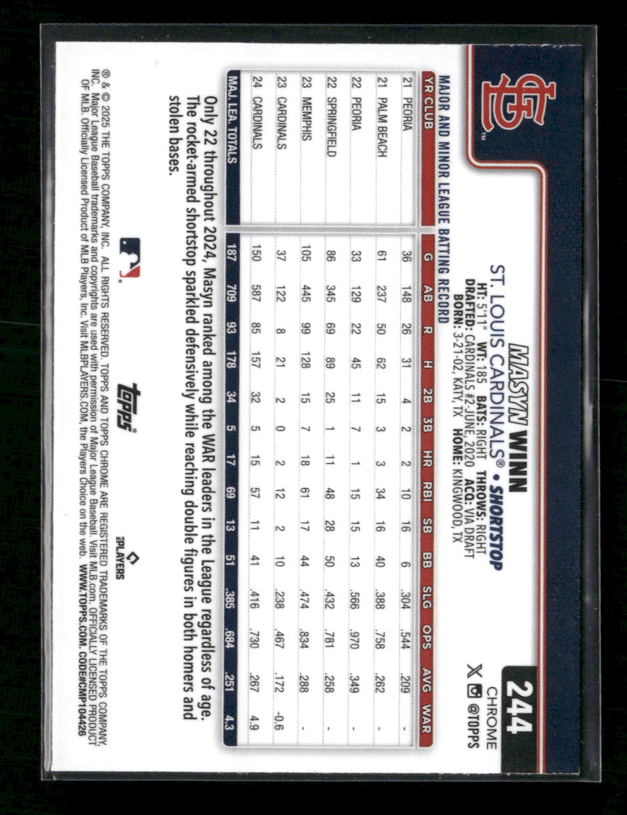 2025 Topps Chrome Green Refractors Masyn Winn #/99 #244