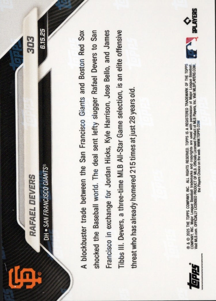 2025 Topps Now Rafael Devers #303 Orange Foil /25 Baseball Card