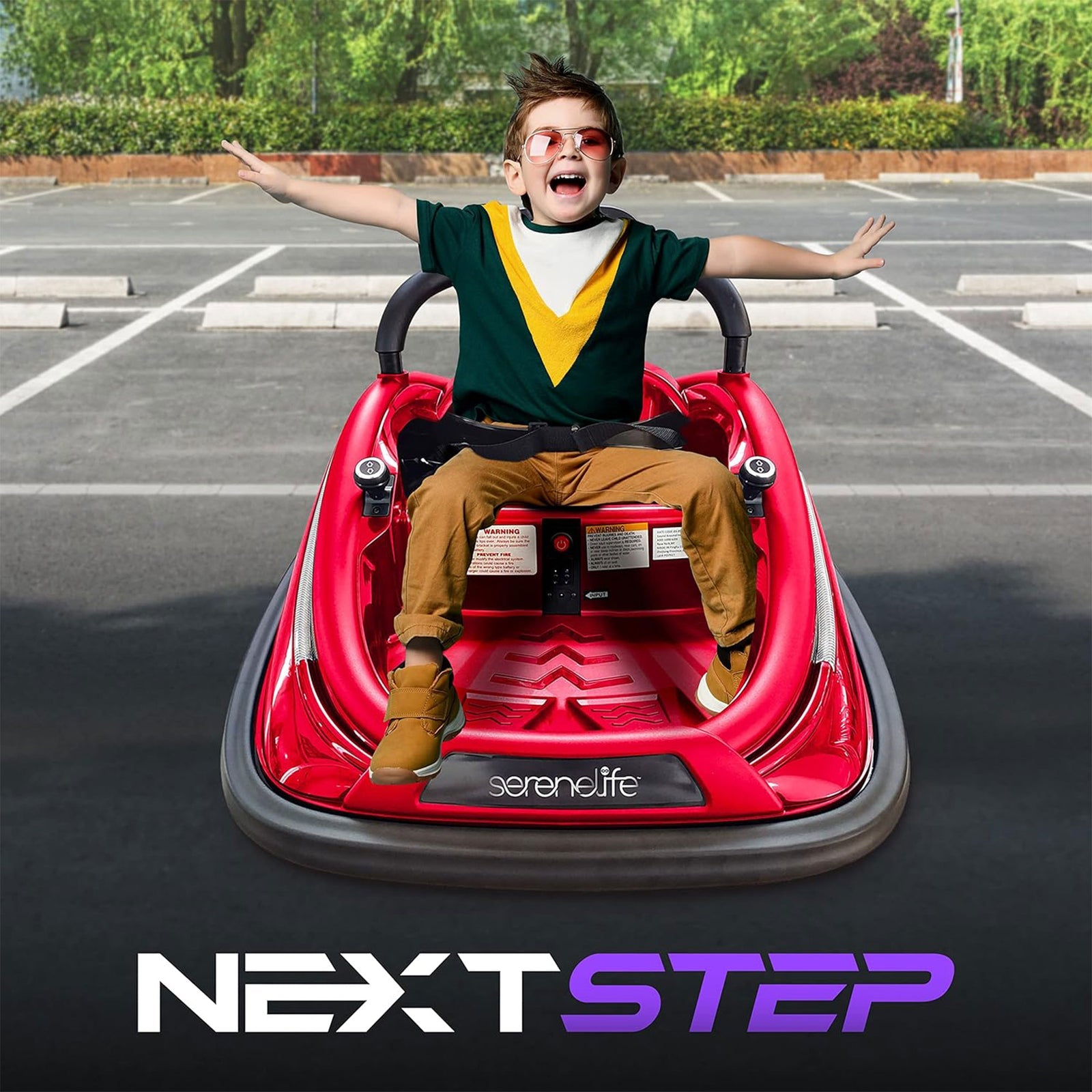 360 Degree Rotating Bumper Car with Adjustable Belt and Controls in Red