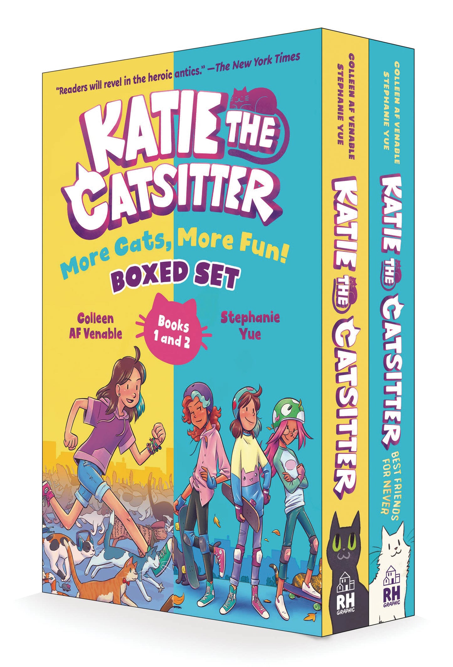 The bestselling graphic novel series Katie the Catsitter is now available in a purr-fectly irresistible boxed set! Katie the Catsitter: Katie is dreading the summer without her best friends- until she gets a job catsitting for a mysterious neighbor who has 217 cats! (And they're not exactly... normal cats!) Katie the Catsitter: Best Friends for Never: School's starting and all of Katie's friends are mad at her! With the help of 217 out-of-the-ordinary cats- can Katie fix things and be the friend she's always meant to be? Includes two books filled with friendship- heroes- and cats (lots of cats)!