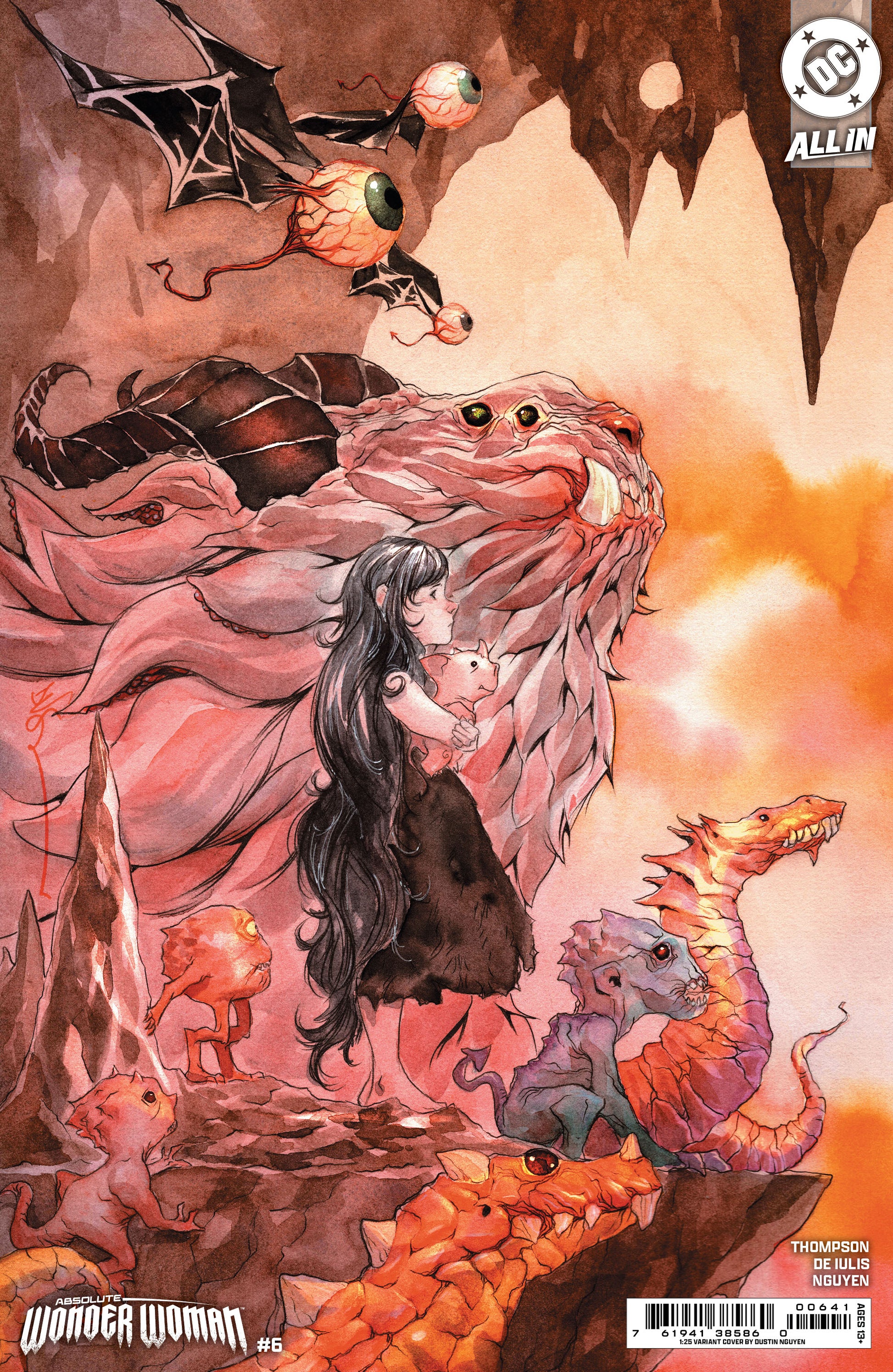 THE SHOCKING ORIGIN OF DIANA'S DEADLY WEAPONS! Diana defied the will of the gods in leaving Hell- and Hades- lord of the underworld- takes that personally...but when he interrogates her- her tales surprise him. Will it change her fate? Kicking off a two-part guest arc from the breakout artist of The Cull- Mattia De Iulis--and featuring a surprising and delightful backup tale of Li'l Diana by series writer Kelly Thompson and superstar artist Dustin Nguyen!