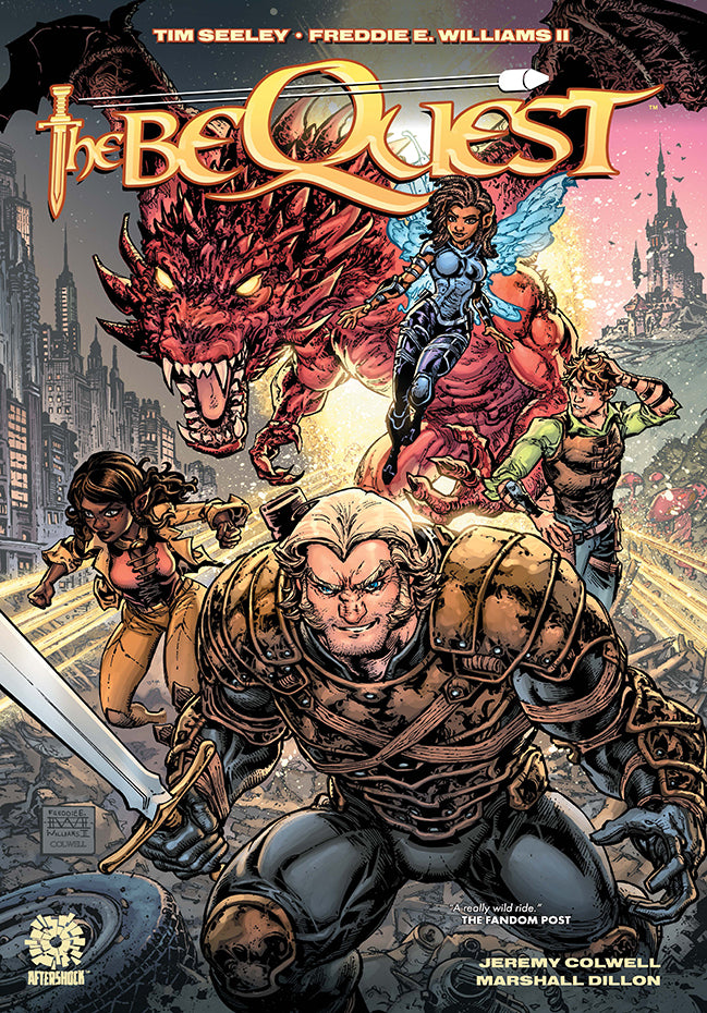 Welcome to the high fantasy world of Tangea! A land where wizards and warriors battle dragons in dark dank dungeons! Where thieves pillage ancient ruins and priests an-swer the audible words of their great gods! Welcome to Chicago- Illinois! Where the magical items from Tangea are being traded on the black market and are messing everything up. Now- a group of Tangea adventurers must go undercover in our modern world to stop artifacts and monsters from falling into the wrong hands. But how will they fare in a world without wizards and warriors? A world without heroes? This 128-page volume contains the entire series- issues #1-4. From Tim Seeley (DARK RED- BRILLIANT TRASH) and Freddie E. Williams II (HeMan/Thundercats- Batman/Teenage Mutant Ninja Turtles) comes BEQUEST- a real-world fantasy tale.