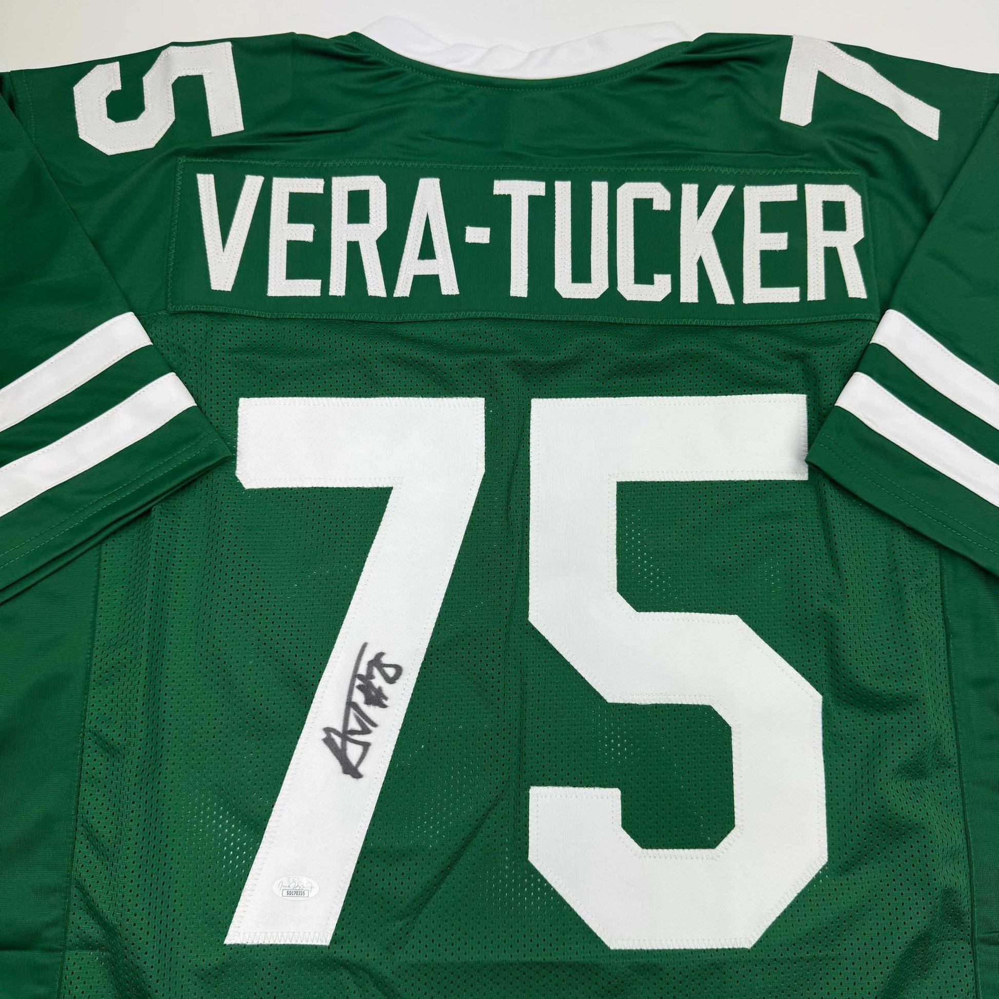 Autographed/Signed Alijah Vera-Tucker New York Green Football Jersey JSA COA