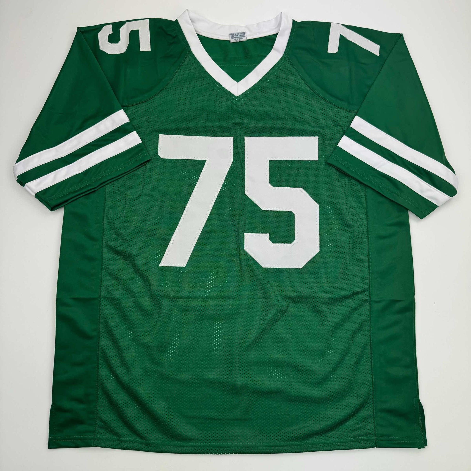 Jersey has no brand names or logos. This is a custom jersey and was not manufactured by or in any manner associated with any professional sports league or manufacturer. This custom jersey carries no professional sports league designation. The item is intended to be an autographed collectible. The custom jersey displays the name and number of the player. This item in no way is affiliated with or connected to any professional sports organization. Size is XL.