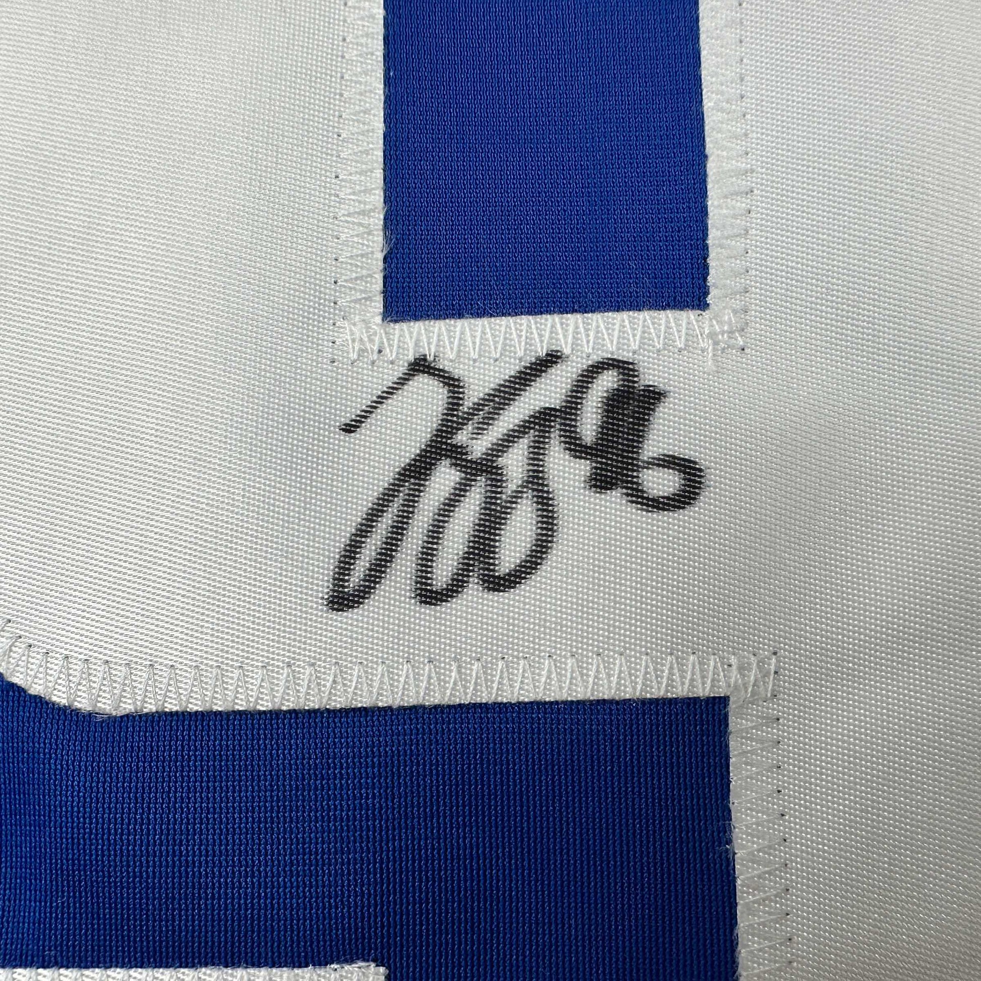 Jersey has no brand names or logos. This is a custom jersey and was not manufactured by or in any manner associated with any professional sports league or manufacturer. This custom jersey carries no professional sports league designation. The item is intended to be an autographed collectible. The custom jersey displays the name and number of the player. This item in no way is affiliated with or connected to any professional sports organization. Size is XL.