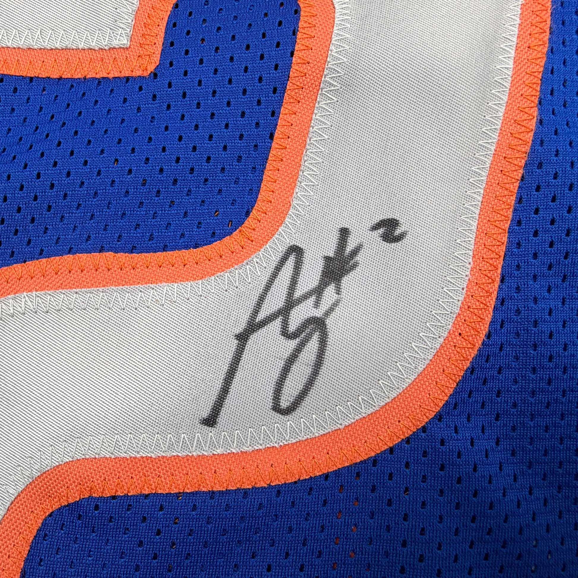 Jersey has no brand names or logos. This is a custom jersey and was not manufactured by or in any manner associated with any professional sports league or manufacturer. This custom jersey carries no professional sports league designation. The item is intended to be an autographed collectible. The custom jersey displays the name and number of the player. This item in no way is affiliated with or connected to any professional sports organization. Size is XL.