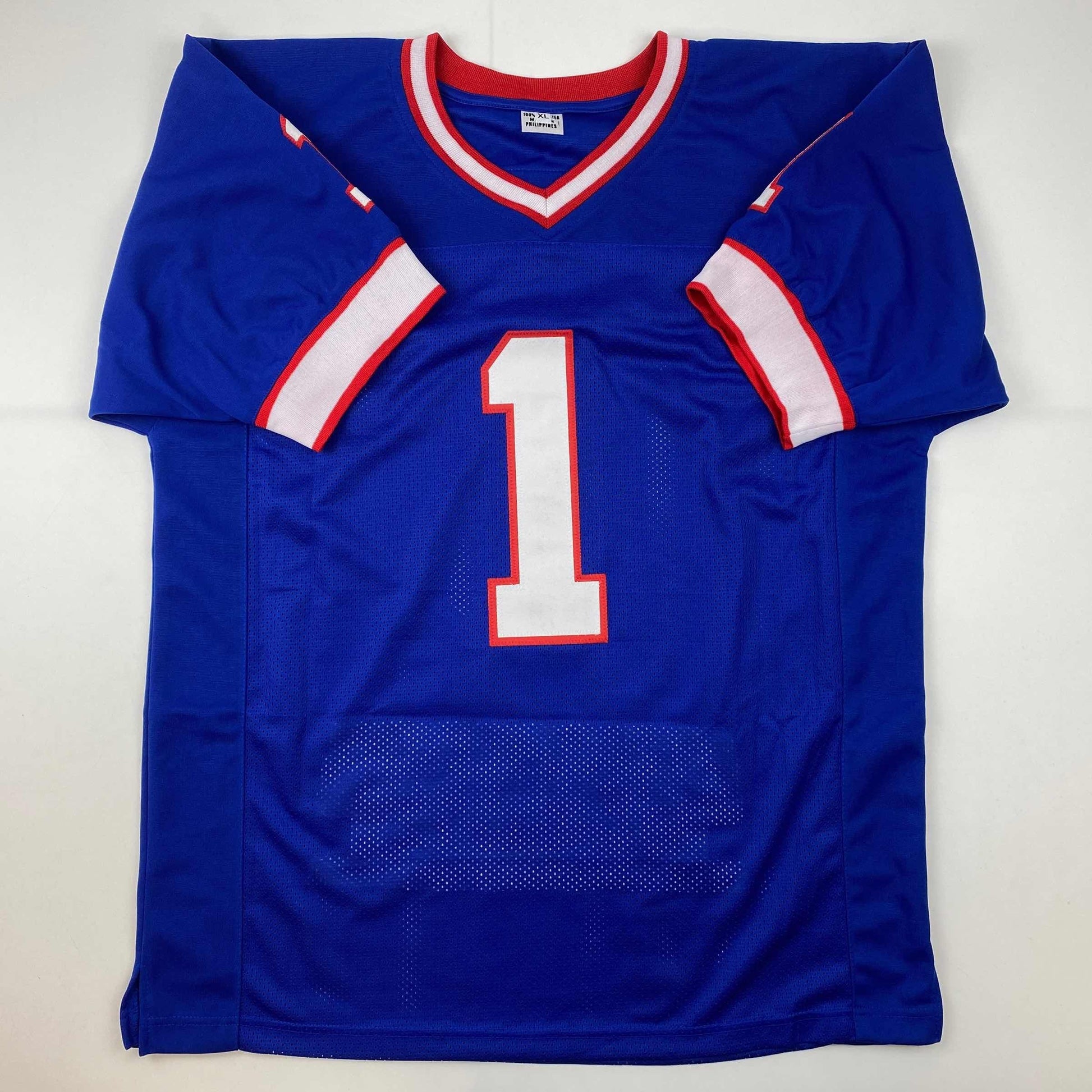 Jersey has no brand names or logos. This is a custom jersey and was not manufactured by or in any manner associated with any professional sports league or manufacturer. This custom jersey carries no professional sports league designation. The item is intended to be an autographed collectible. The custom jersey displays the name and number of the player. This item in no way is affiliated with or connected to any professional sports organization. Size is XL.