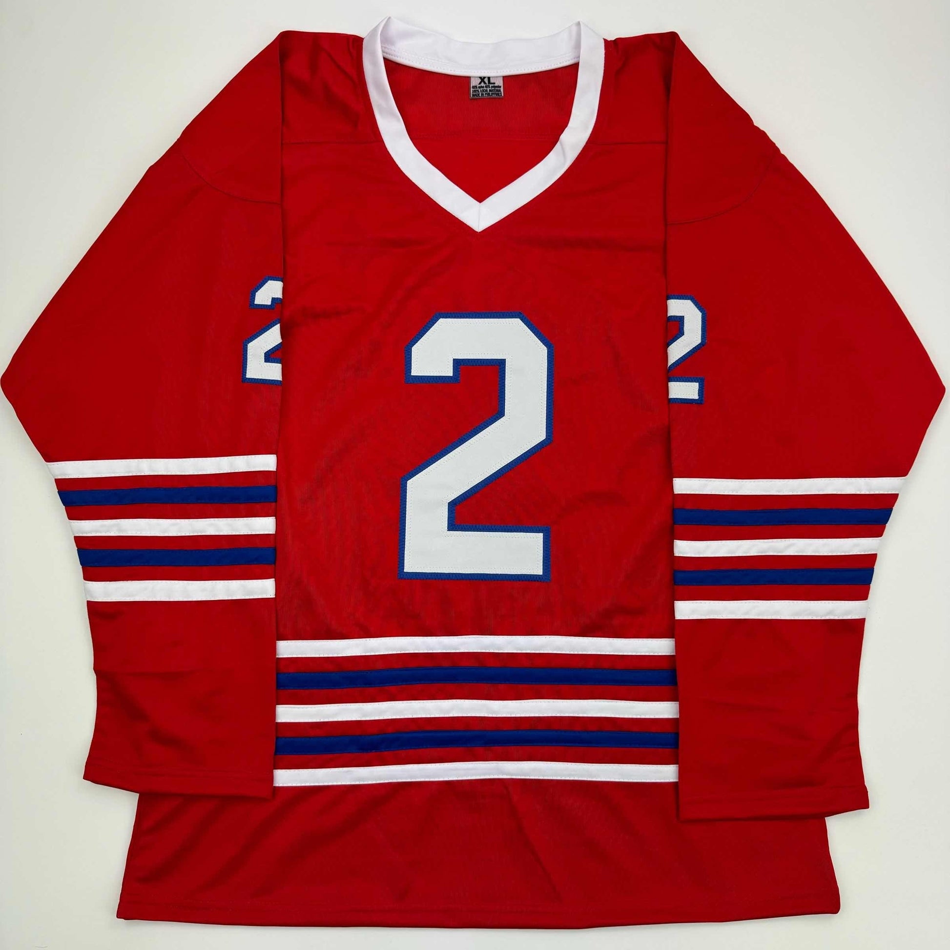 Jersey has no brand names or logos. This is a custom jersey and was not manufactured by or in any manner associated with any professional sports league or manufacturer. This custom jersey carries no professional sports league designation. The item is intended to be an autographed collectible. The custom jersey displays the name and number of the player. This item in no way is affiliated with or connected to any professional sports organization. Size is XL.