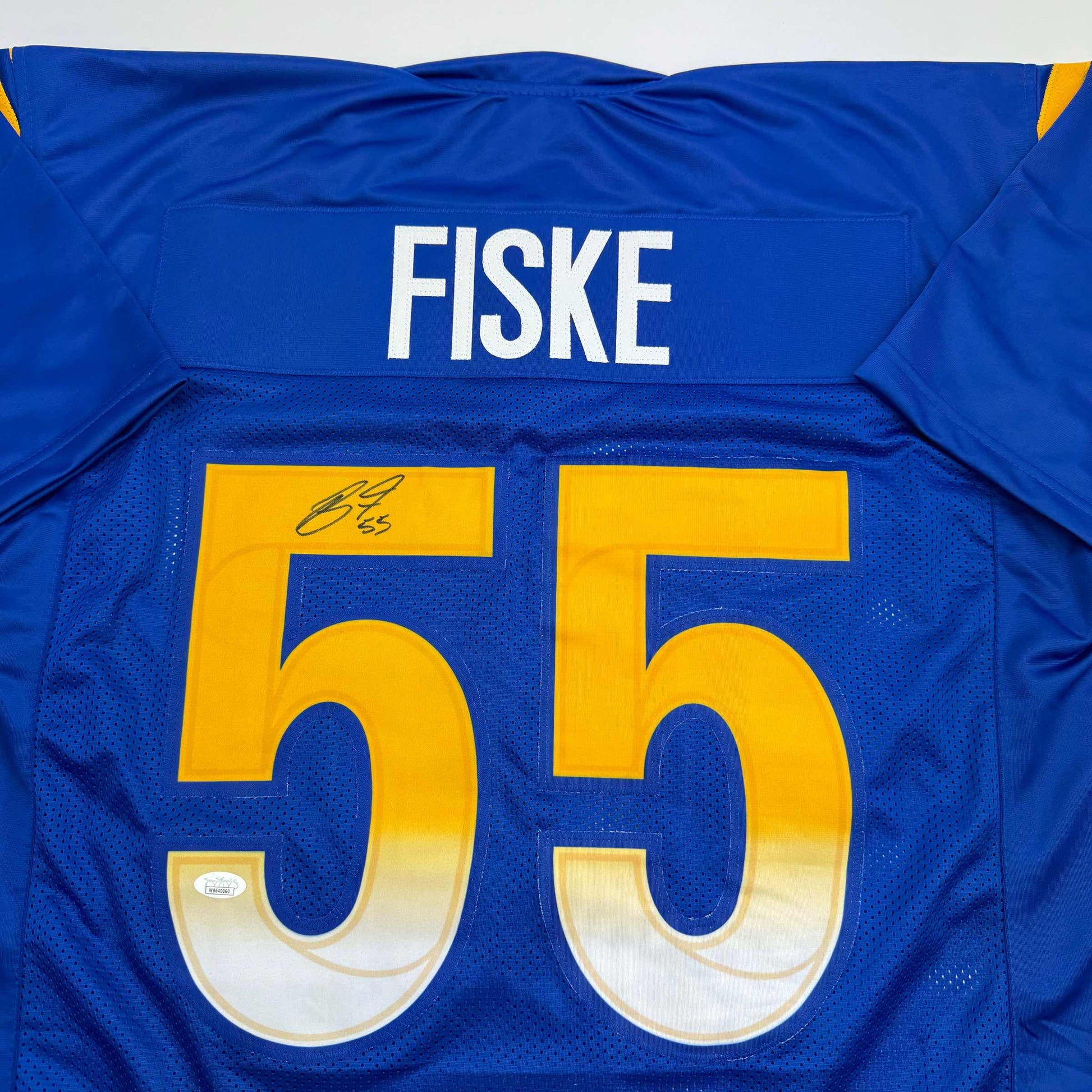 Autographed/Signed Braden Fiske Los Angeles LA Blue Football Jersey JSA COA