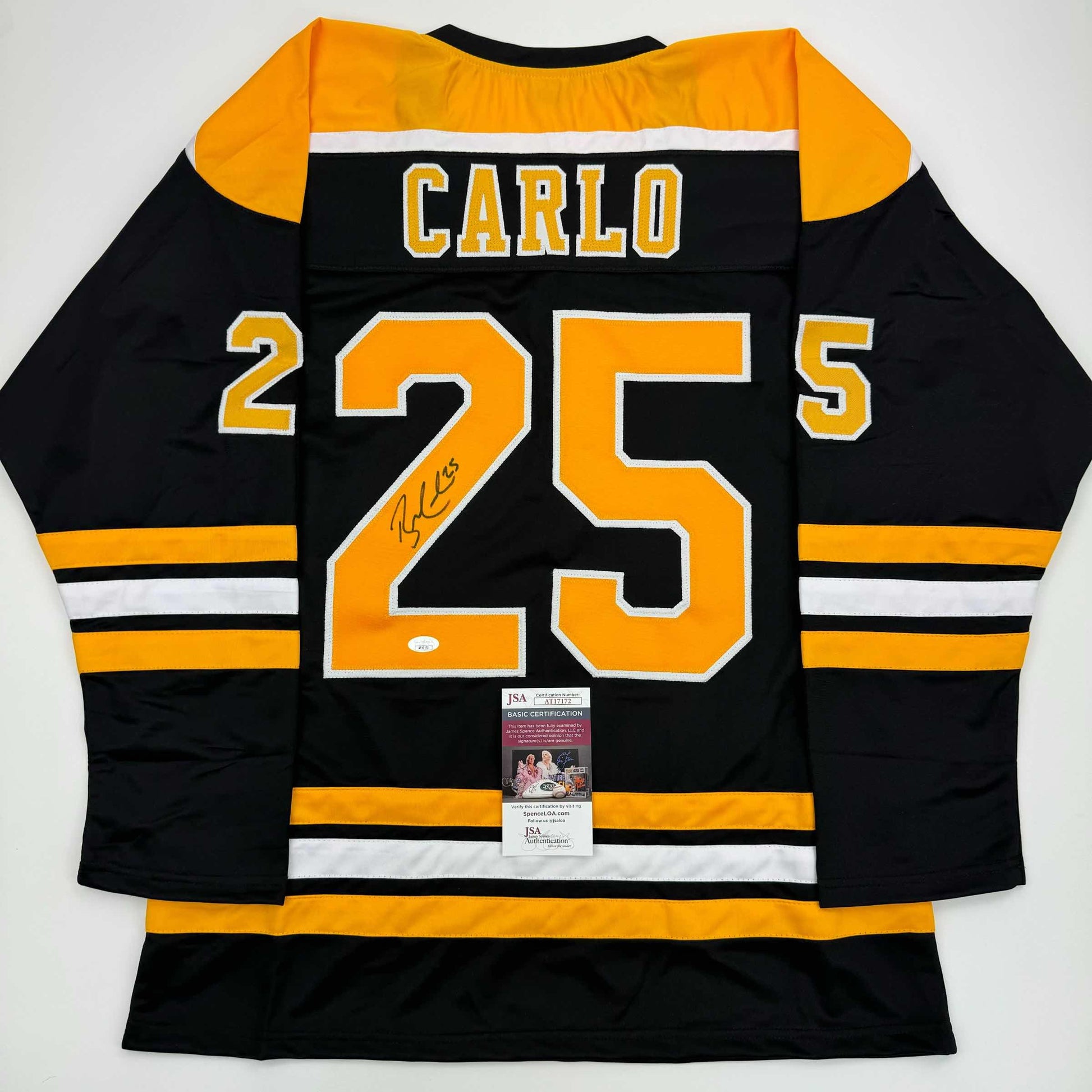 Autographed/Signed Brandon Carlo Boston Black Hockey Jersey JSA COA