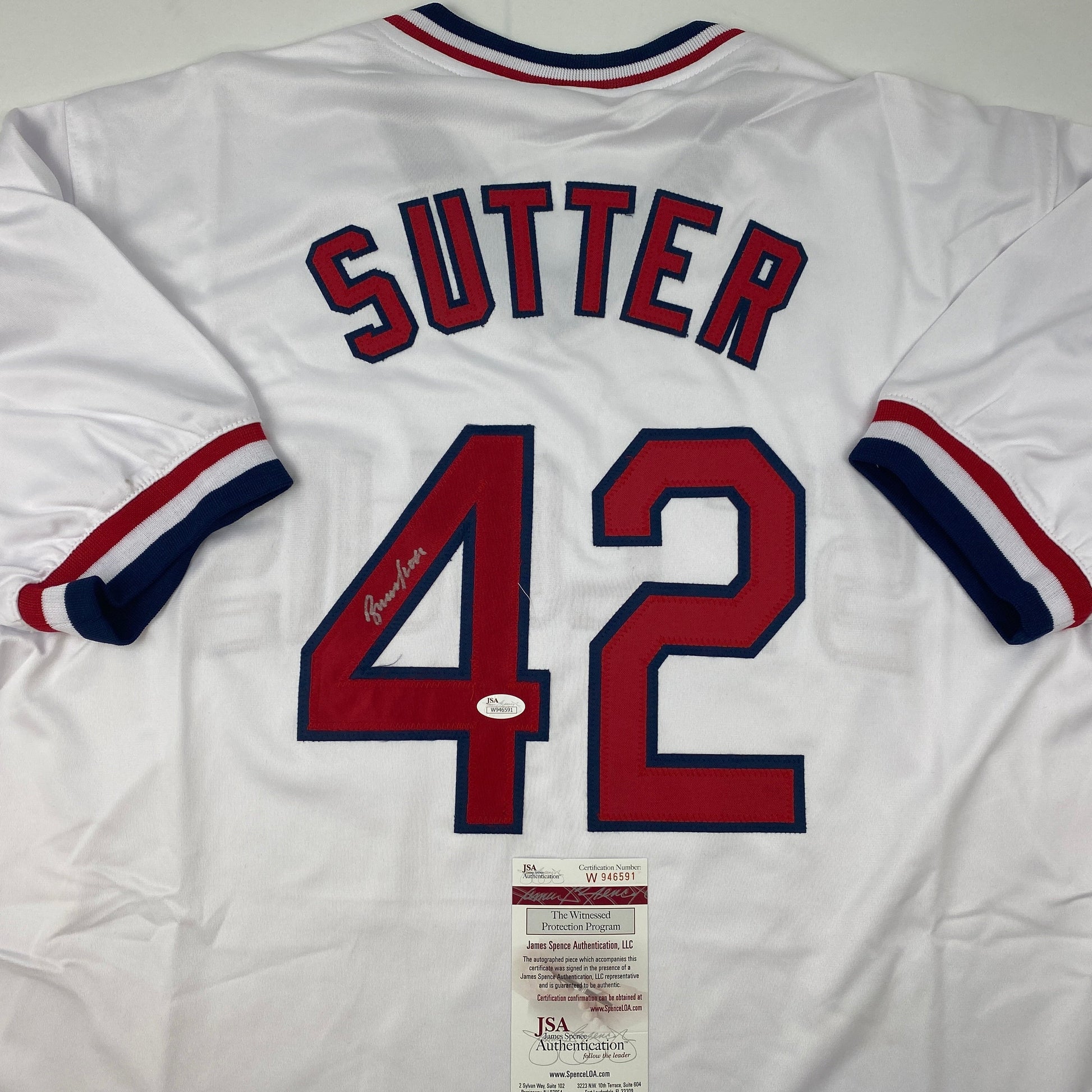 Autographed/Signed Bruce Sutter St. Louis White Baseball Jersey JSA COA