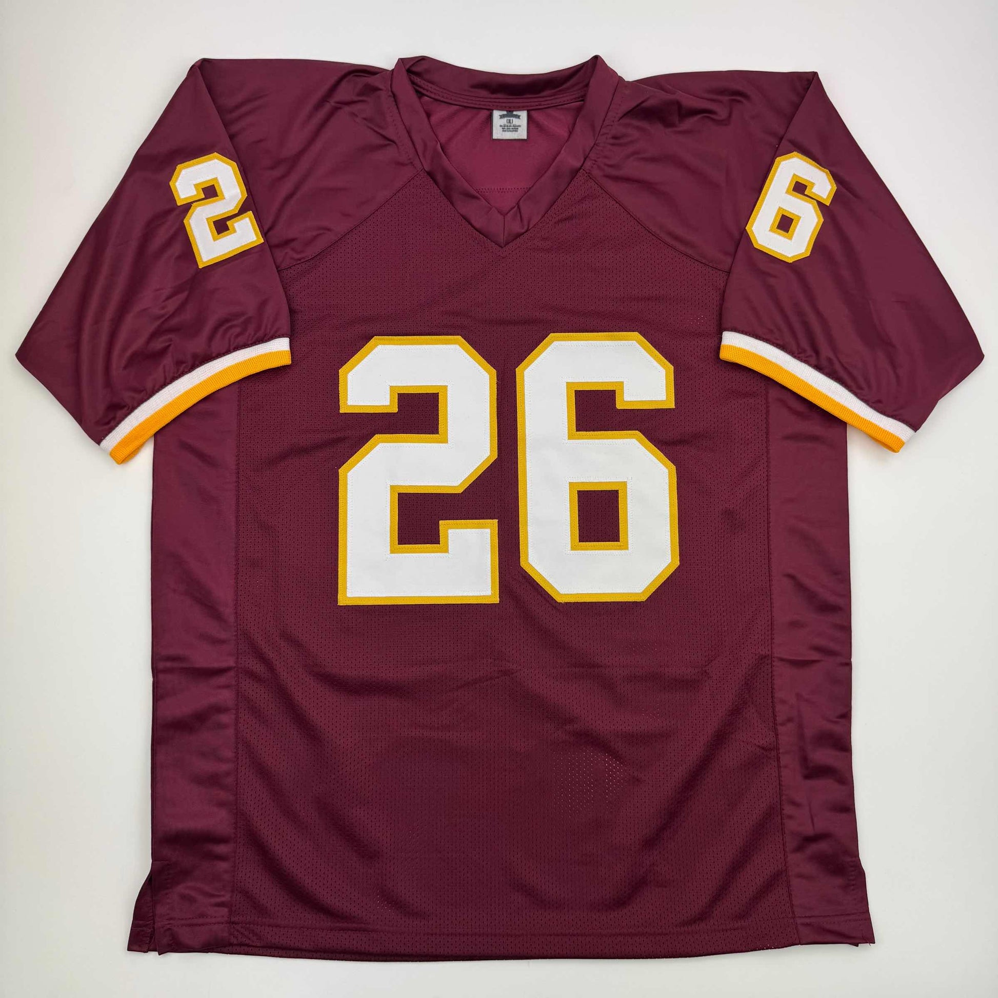 Jersey has no brand names or logos. This is a custom jersey and was not manufactured by or in any manner associated with any professional sports league or manufacturer. This custom jersey carries no professional sports league designation. The item is intended to be an autographed collectible. The custom jersey displays the name and number of the player. This item in no way is affiliated with or connected to any professional sports organization. Size is XL.