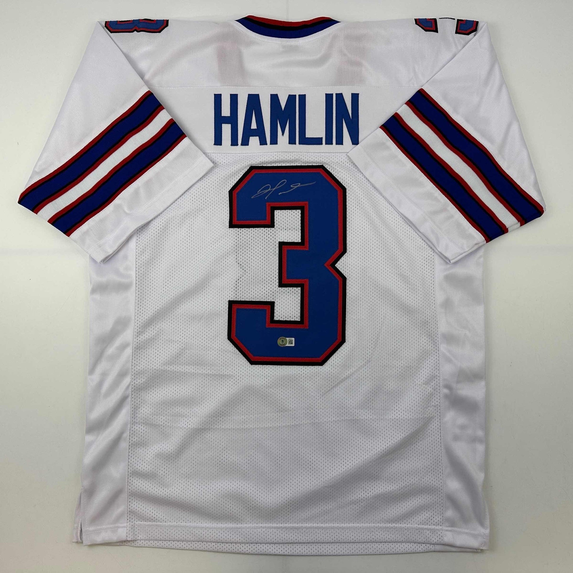 Autographed/Signed Damar Hamlin Buffalo White Football Jersey Beckett BAS COA