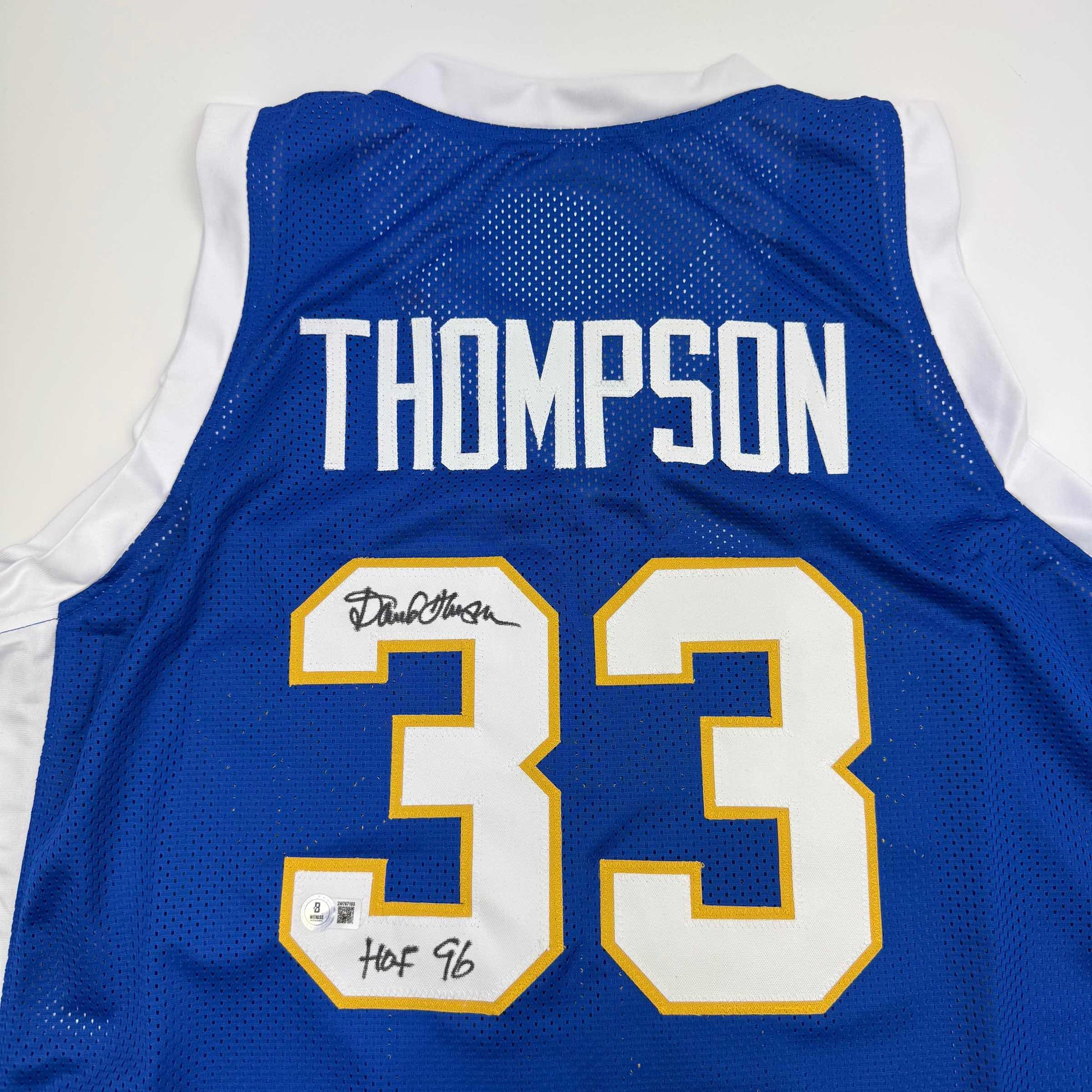 Autographed/Signed David Thompson HOF 96 Denver Blue Retro Rainbow Basketball Jersey Beckett BAS COA