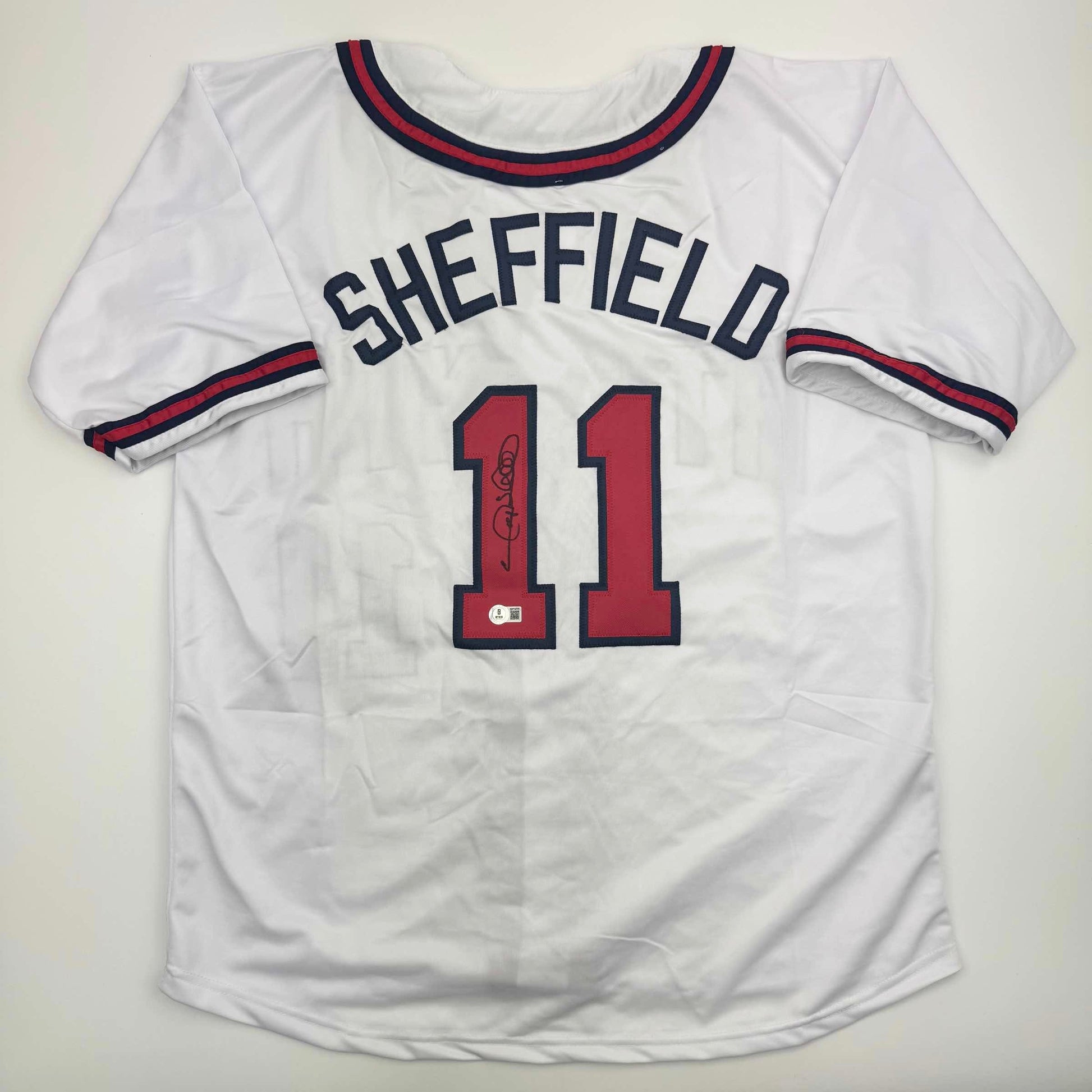 Autographed/Signed Gary Sheffield Atlanta White Baseball Jersey Beckett BAS COA