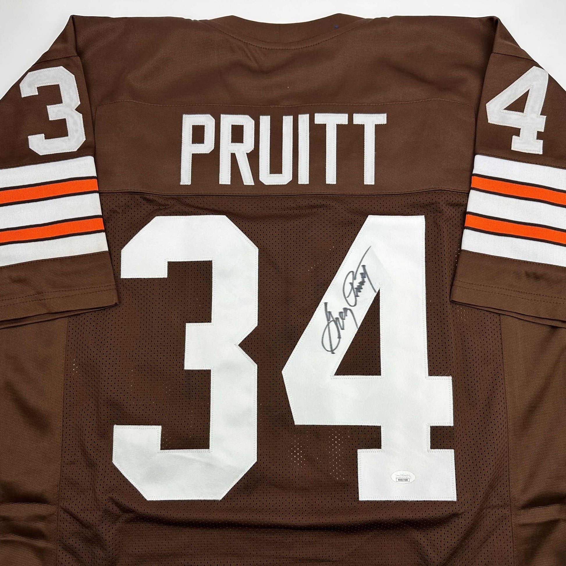 Autographed/Signed Greg Pruitt Cleveland Brown Football Jersey JSA COA