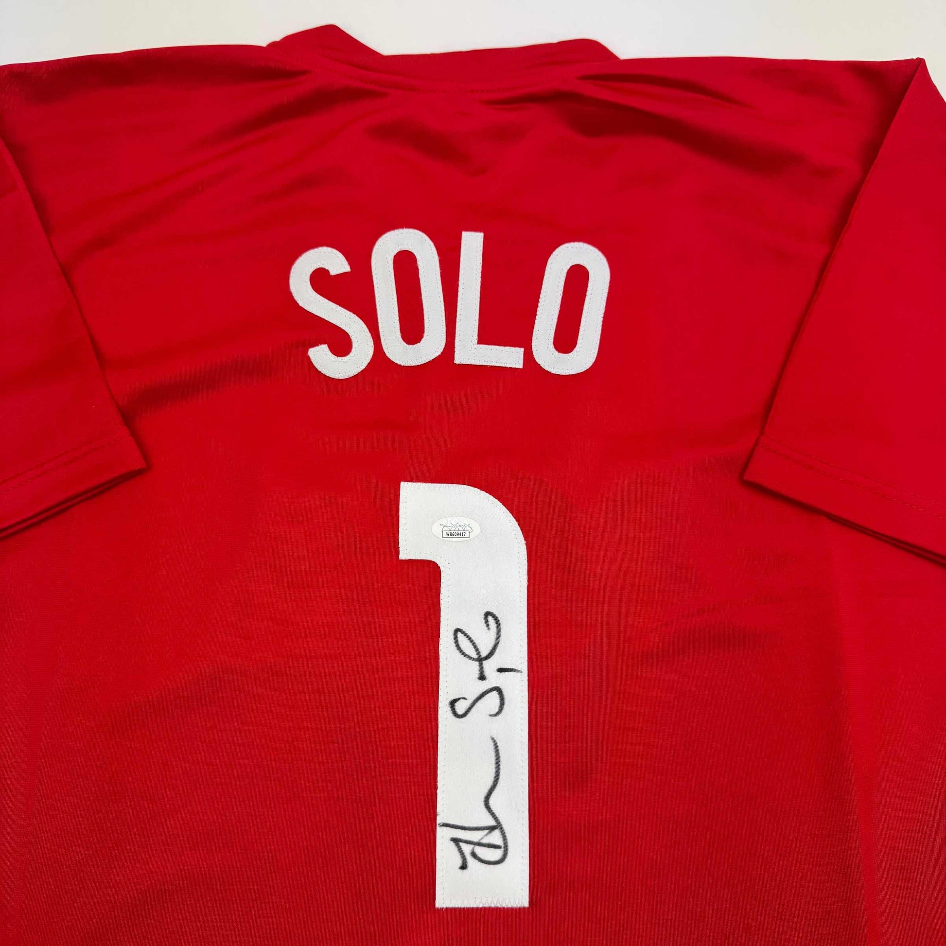Autographed/Signed Hope Solo Red Soccer Team USA World Cup Jersey JSA COA