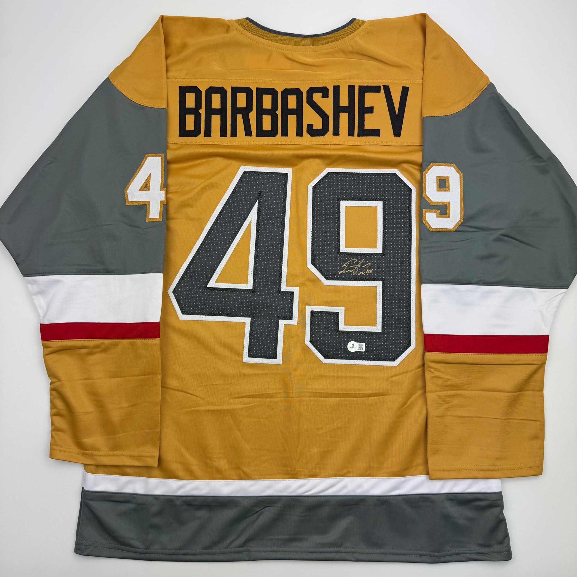 Autographed/Signed Ivan Barbashev Las Vegas Gold Hockey Jersey Beckett BAS COA