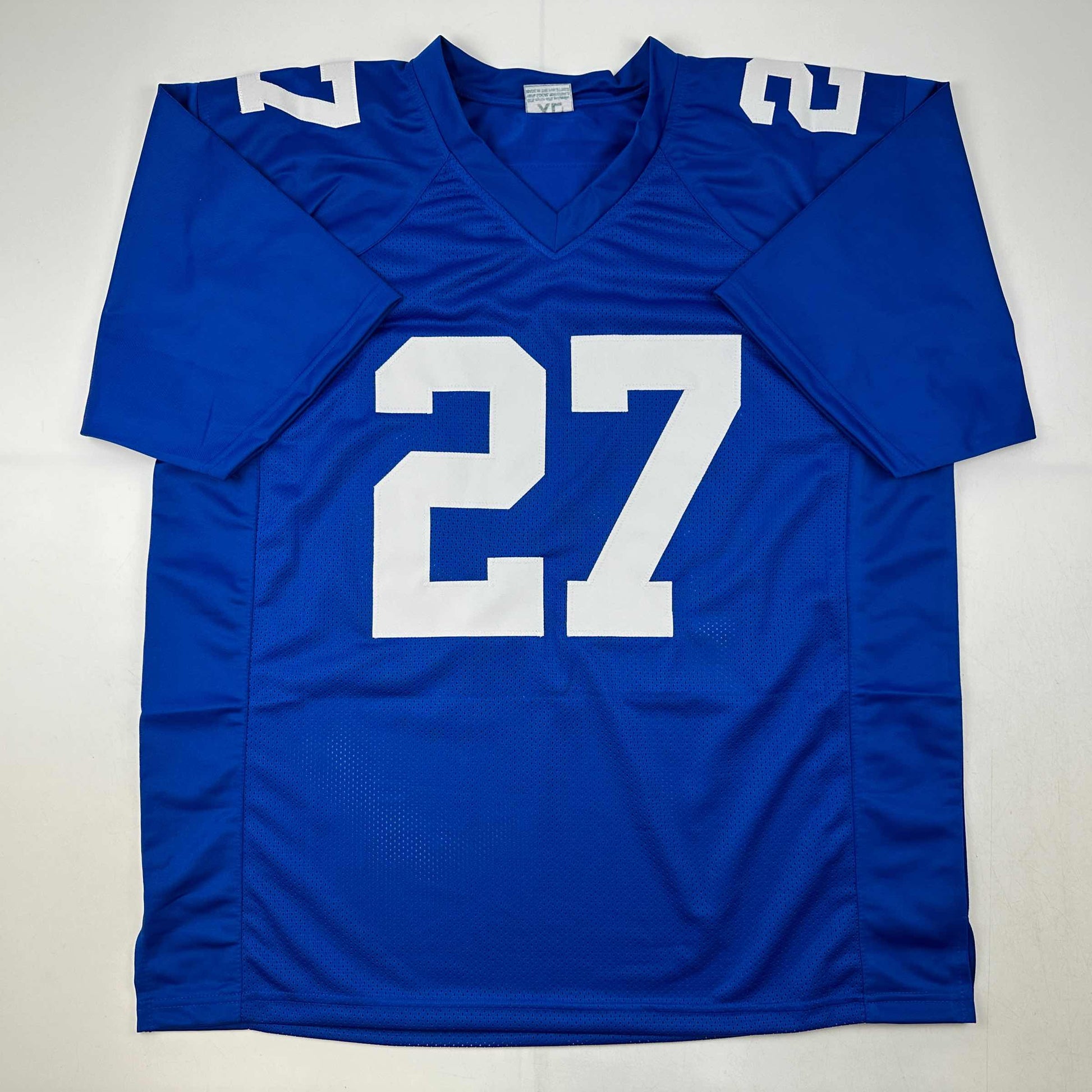Jersey has no brand names or logos. This is a custom jersey and was not manufactured by or in any manner associated with any professional sports league or manufacturer. This custom jersey carries no professional sports league designation. The item is intended to be an autographed collectible. The custom jersey displays the name and number of the player. This item in no way is affiliated with or connected to any professional sports organization. Size is XL.