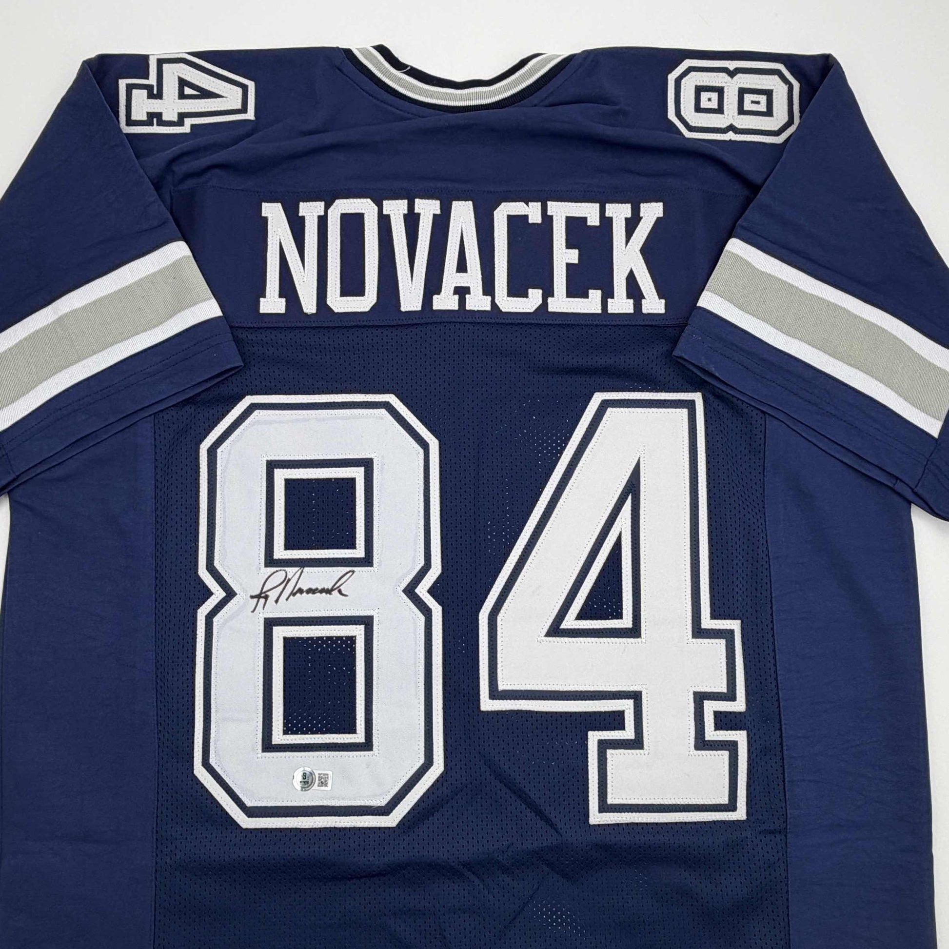 Autographed/Signed Jay Novacek Dallas Dark Blue Football Jersey Beckett BAS COA