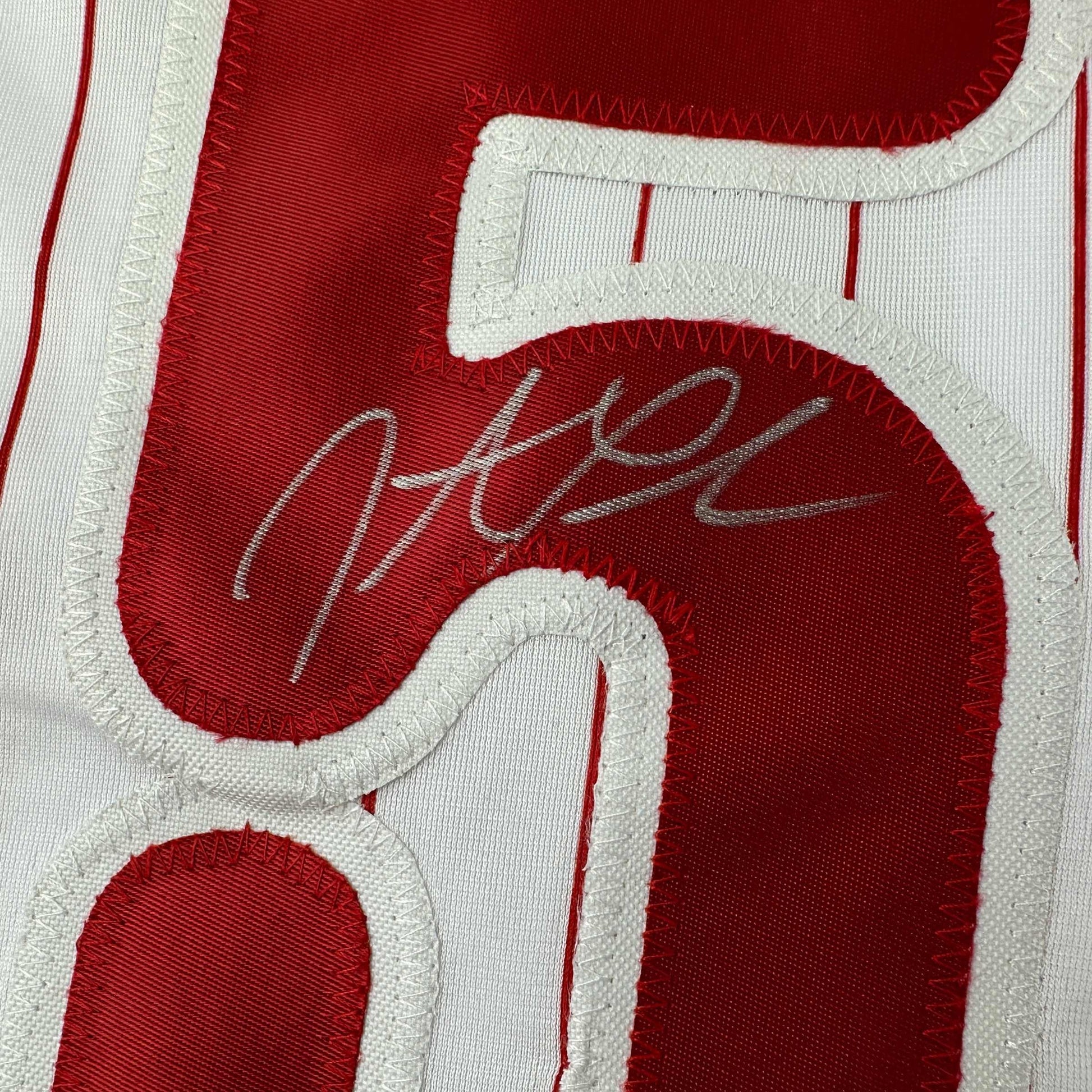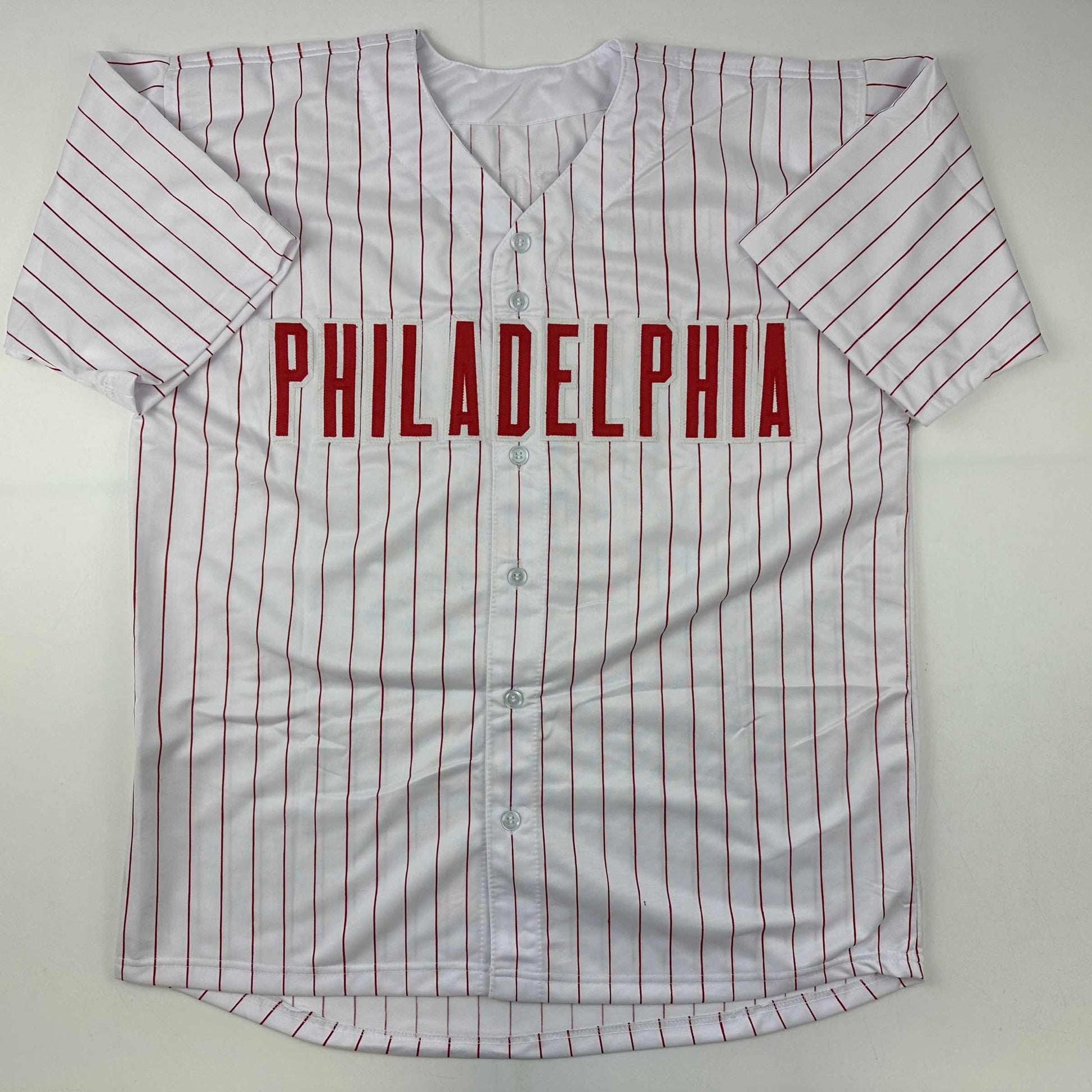 Jersey has no brand names or logos. This is a custom jersey and was not manufactured by or in any manner associated with any professional sports league or manufacturer. This custom jersey carries no professional sports league designation. The item is intended to be an autographed collectible. The custom jersey displays the name and number of the player. This item in no way is affiliated with or connected to any professional sports organization. Size is XL.