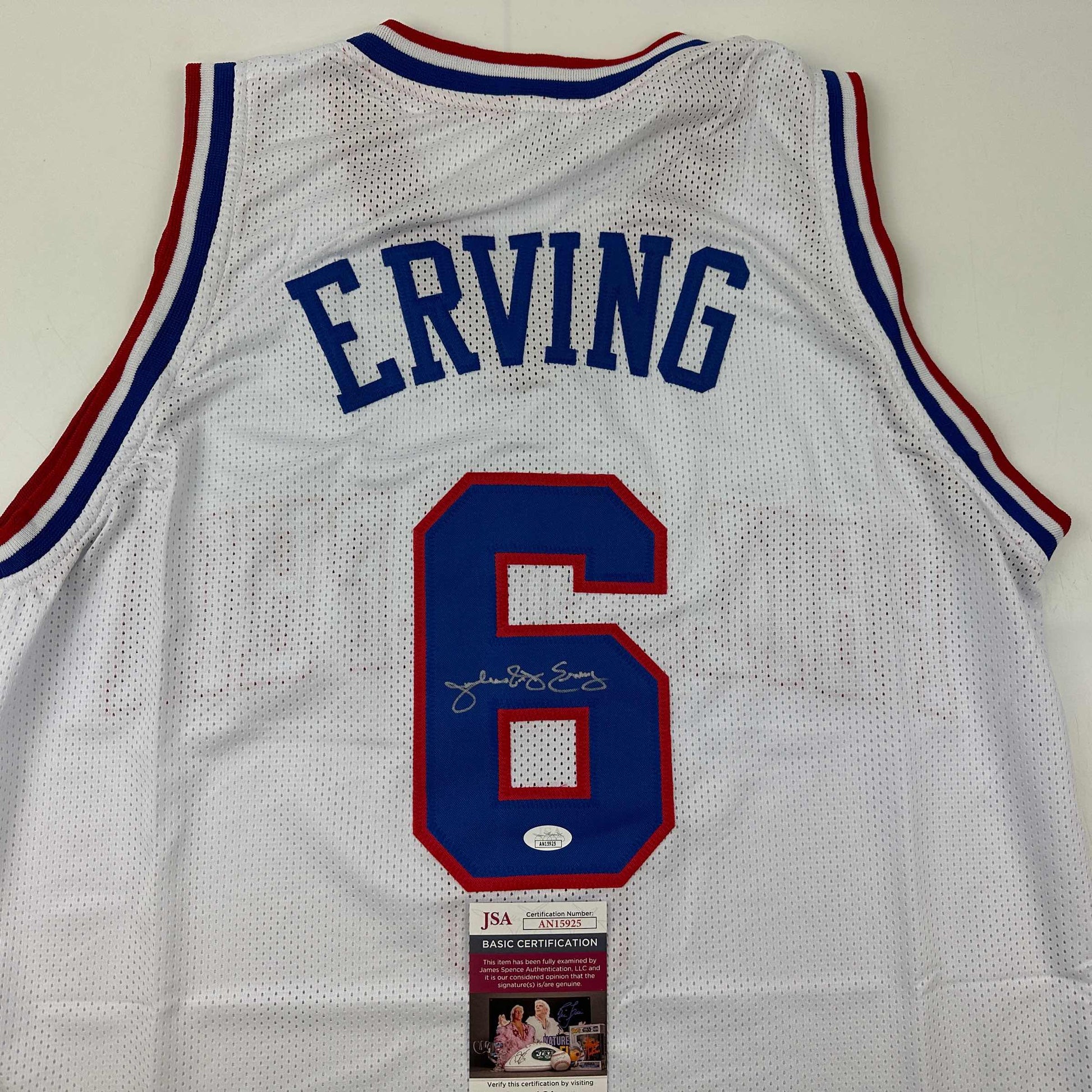 Autographed/Signed Julius Erving Dr. J Philadelphia White Basketball Jersey JSA COA