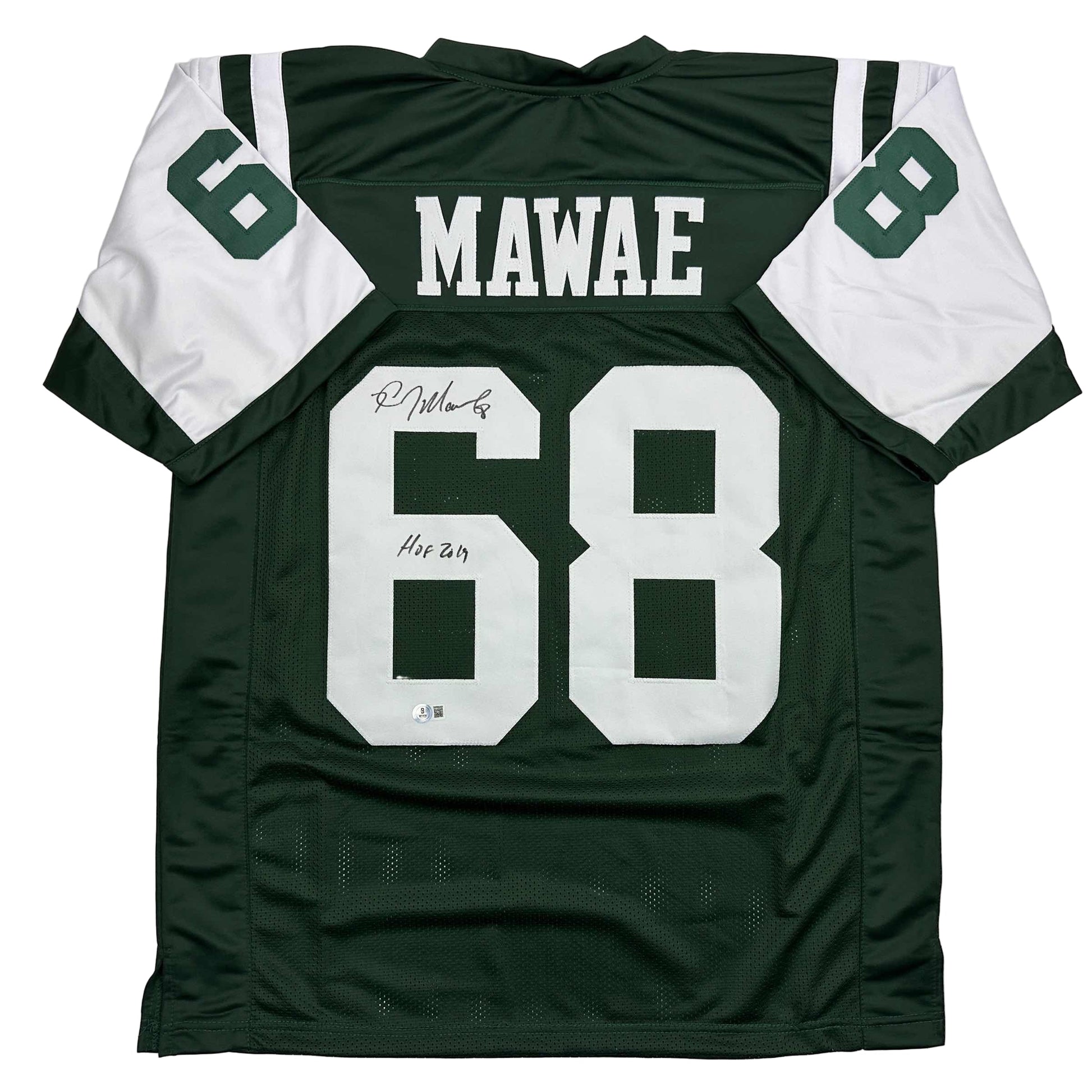 Autographed/Signed Kevin Mawae HOF 2019 New York Green Football Jersey Beckett BAS COA