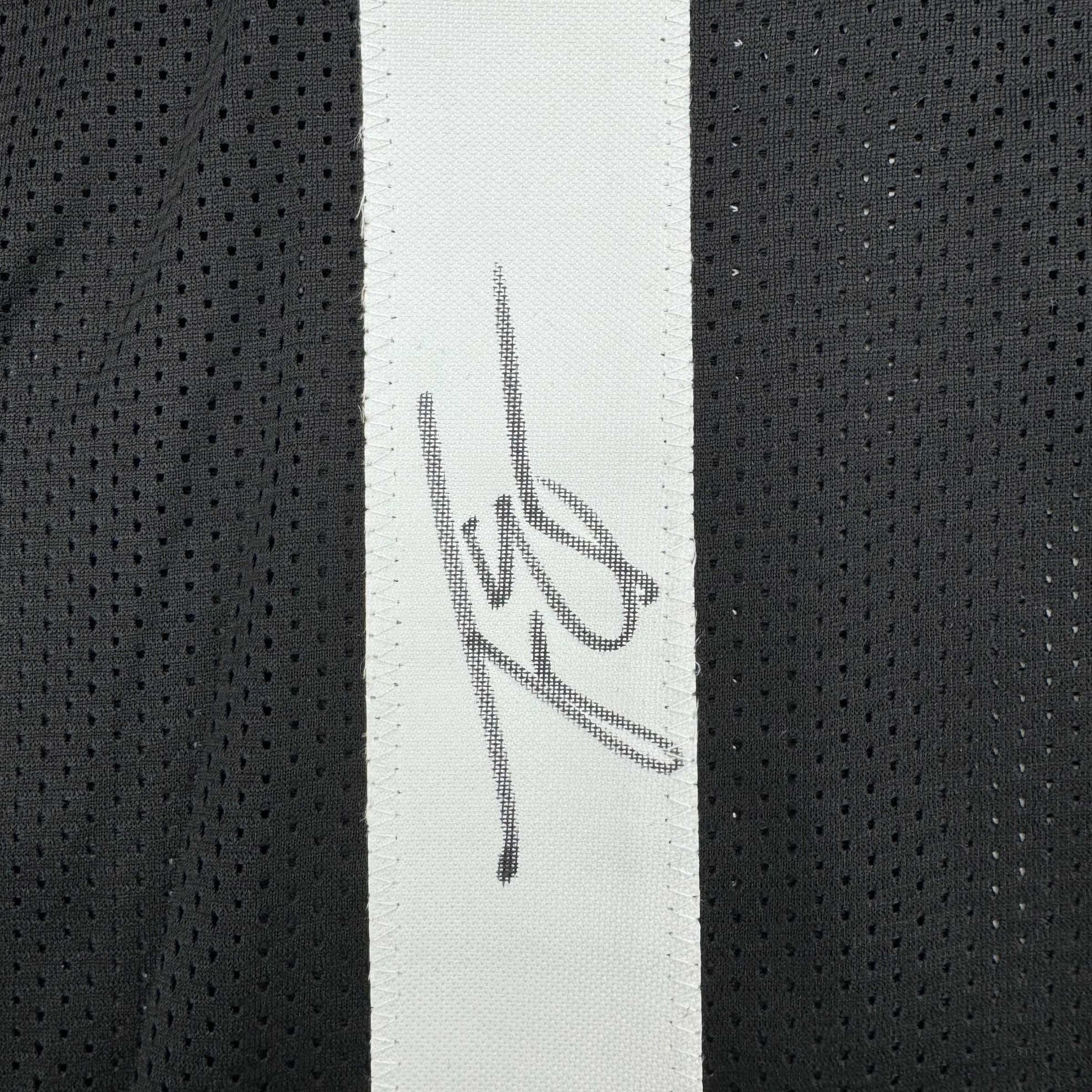 Jersey has no brand names or logos. This is a custom jersey and was not manufactured by or in any manner associated with any professional sports league or manufacturer. This custom jersey carries no professional sports league designation. The item is intended to be an autographed collectible. The custom jersey displays the name and number of the player. This item in no way is affiliated with or connected to any professional sports organization. Size is XL.