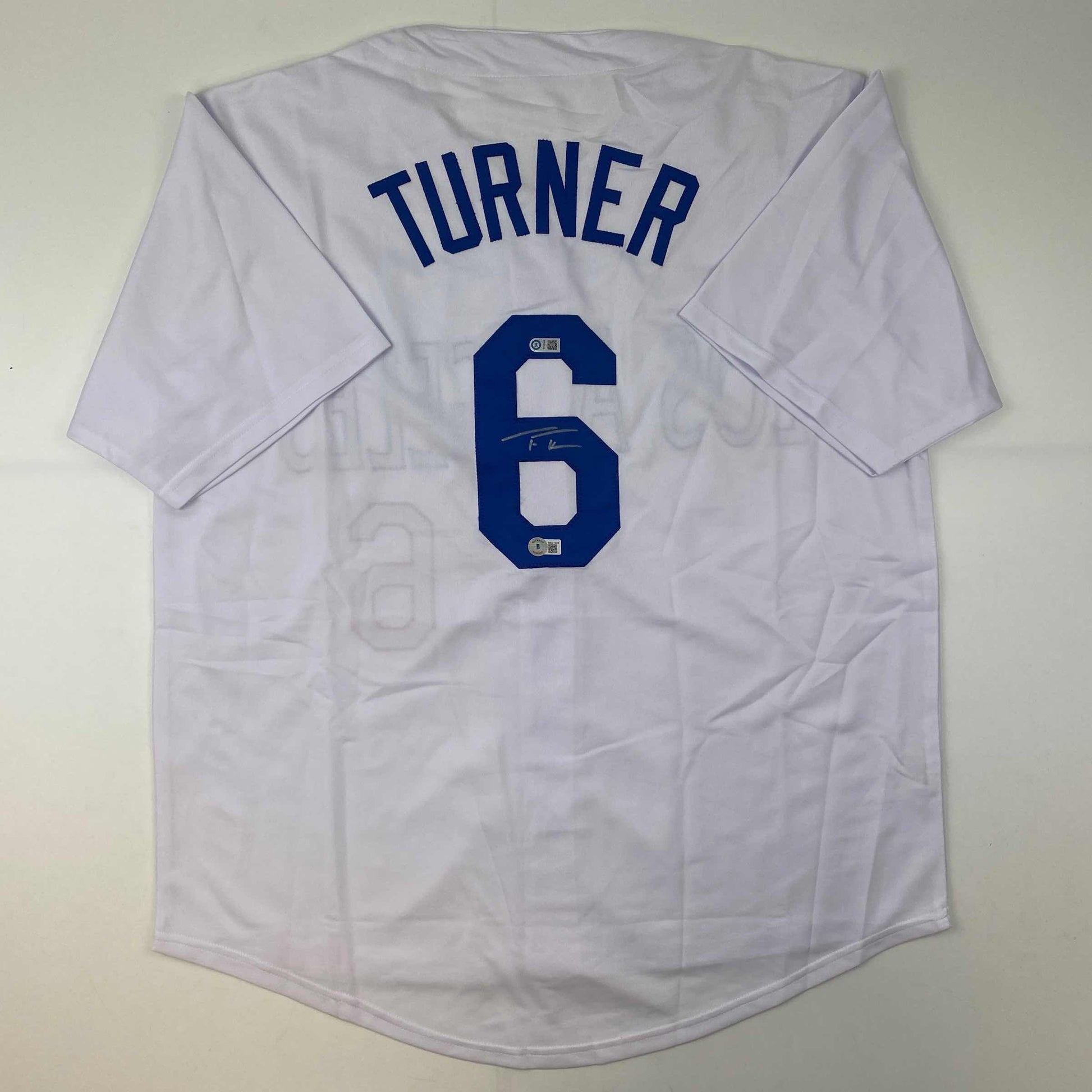 Autographed/Signed Trea Turner Los Angeles LA White Baseball Jersey Beckett BAS COA