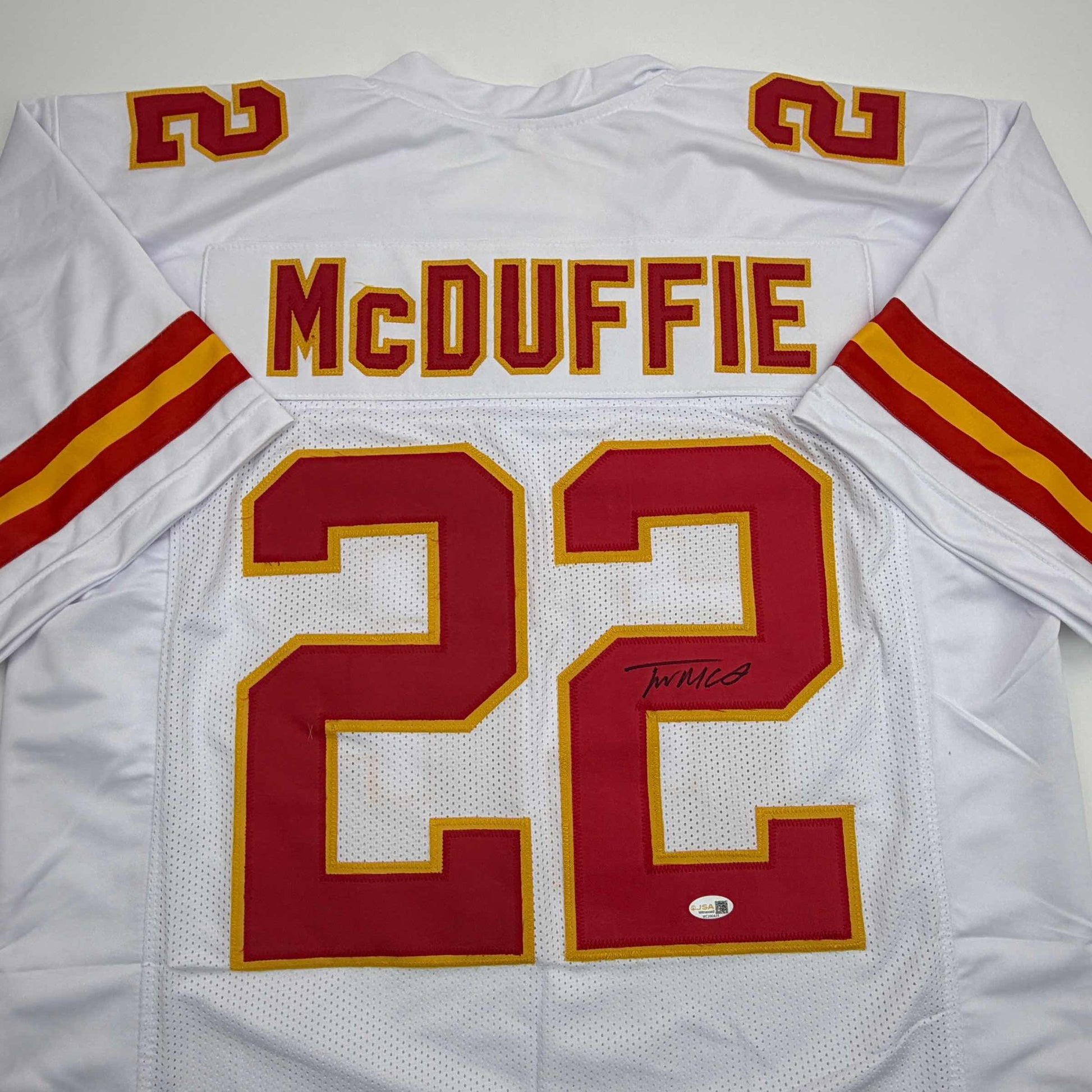 Autographed/Signed Trent McDuffie Kansas City White Football Jersey JSA COA