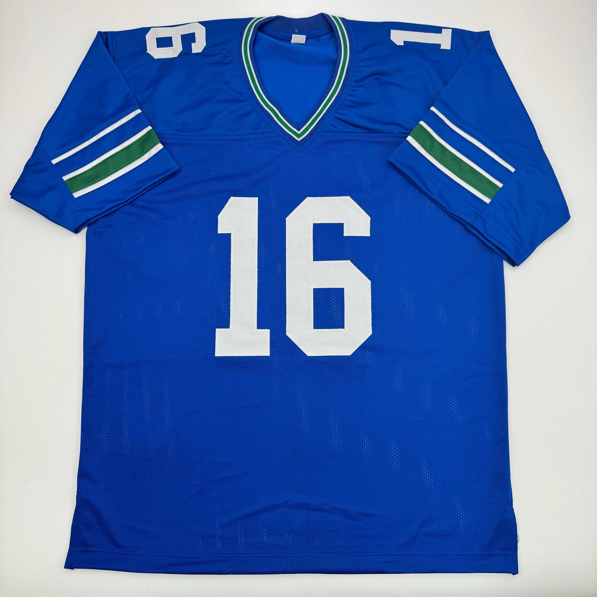 Autographed/Signed Tyler Lockett Seattle Blue Retro Football Jersey JSA COA