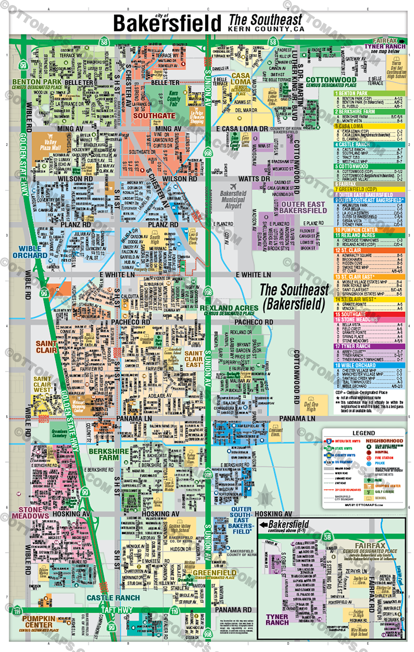 Bakersfield Map, The Southeast - Kern County, CA - POSTER PRINT