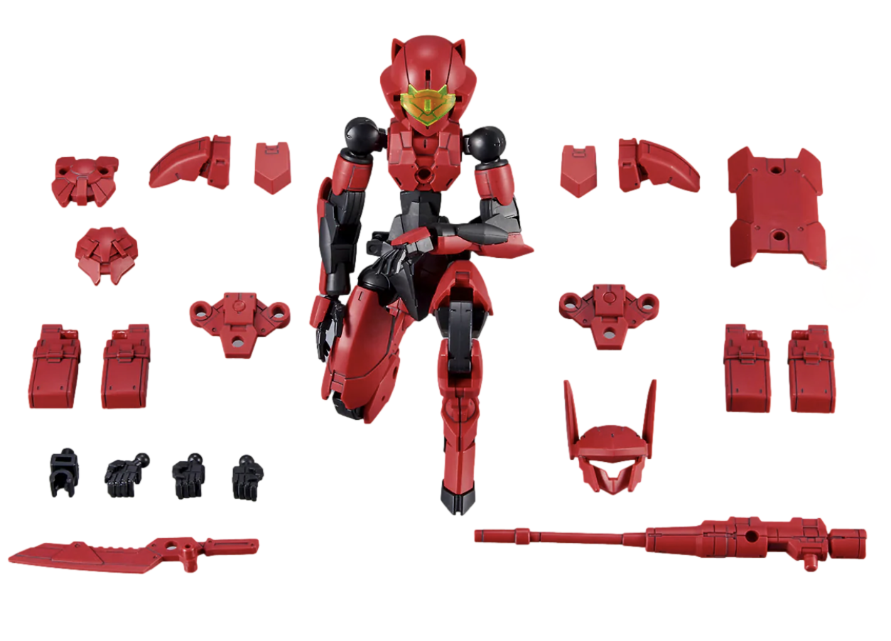 The new female version of Bandai's 30 Minute Missions Spinatio is now available in a commando specification! This all-in-one item combines armor and weapon parts in addition to the main figure; while taking full advantage of the range of mobility, there's no pinching during assembly. Various weapons such as a chain gun, combat knife, and shield are included, and a common 3mm joint structure allows you to combine existing 30MM items with this kit.