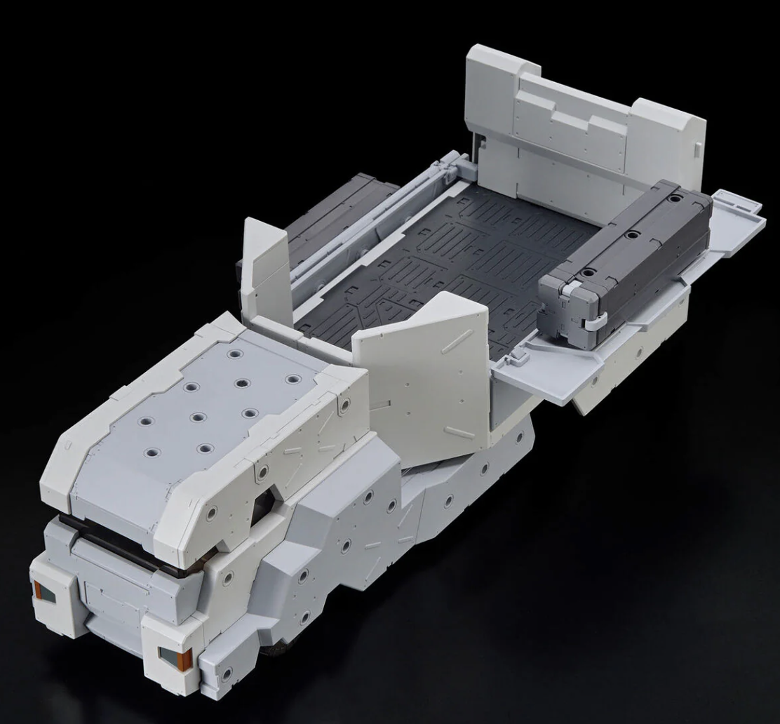 The Dreadnoughtus has 3mm-diameter connection holes for customization with an emphasis on expandability, and various gimmicks, such as the rotation of the tires and expansion of the loading platform gate at the rear of the vehicle, are included. The missile launcher also has a grip that can be attached to mechs!