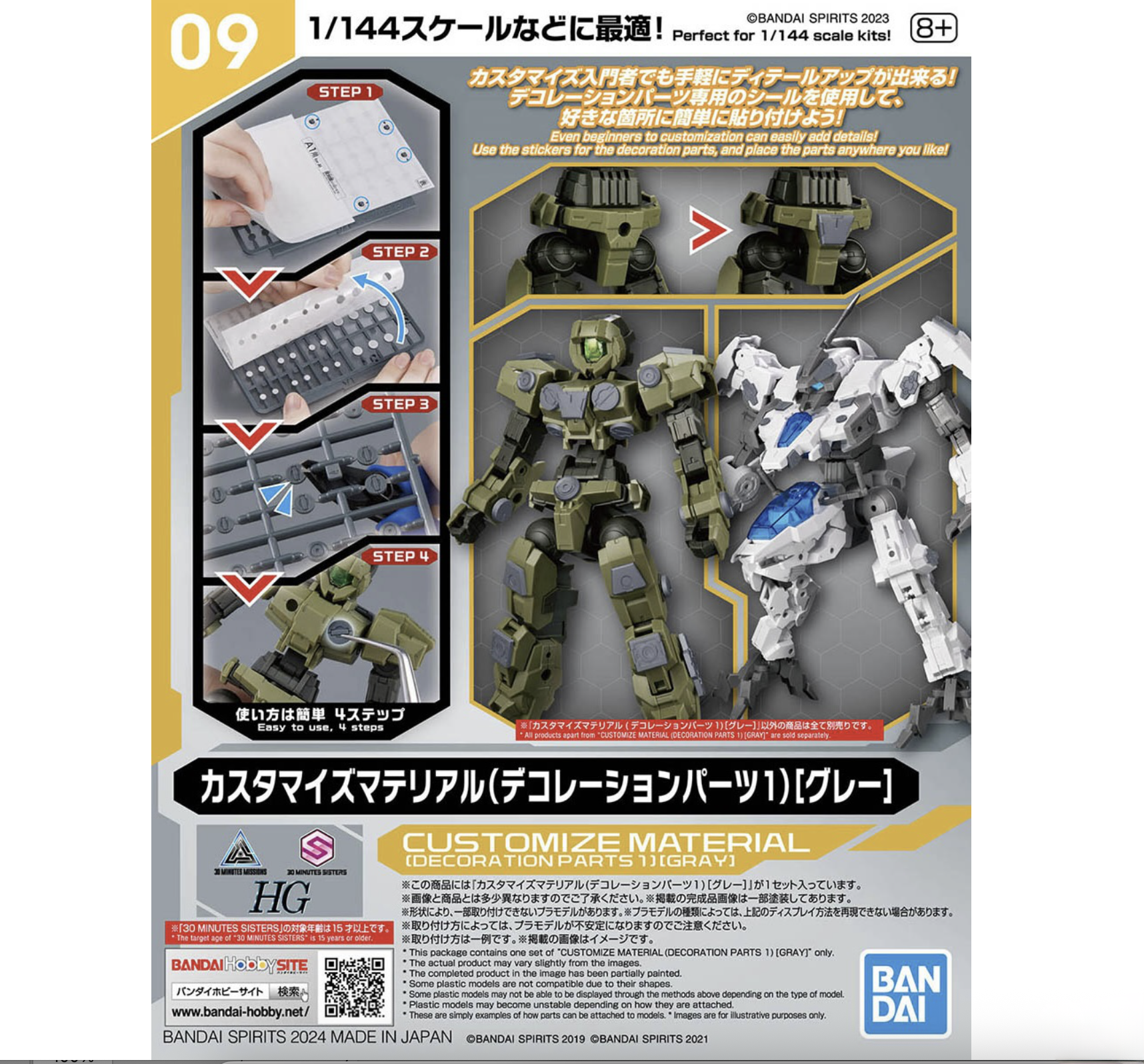 Elevate your model-building experience with the Customize Material Series, now introducing new decoration parts that are perfect for both beginners and experienced builders. These accessories make adding intricate details to your models easier than ever—simply apply the included special stickers to any area you desire for a custom look.