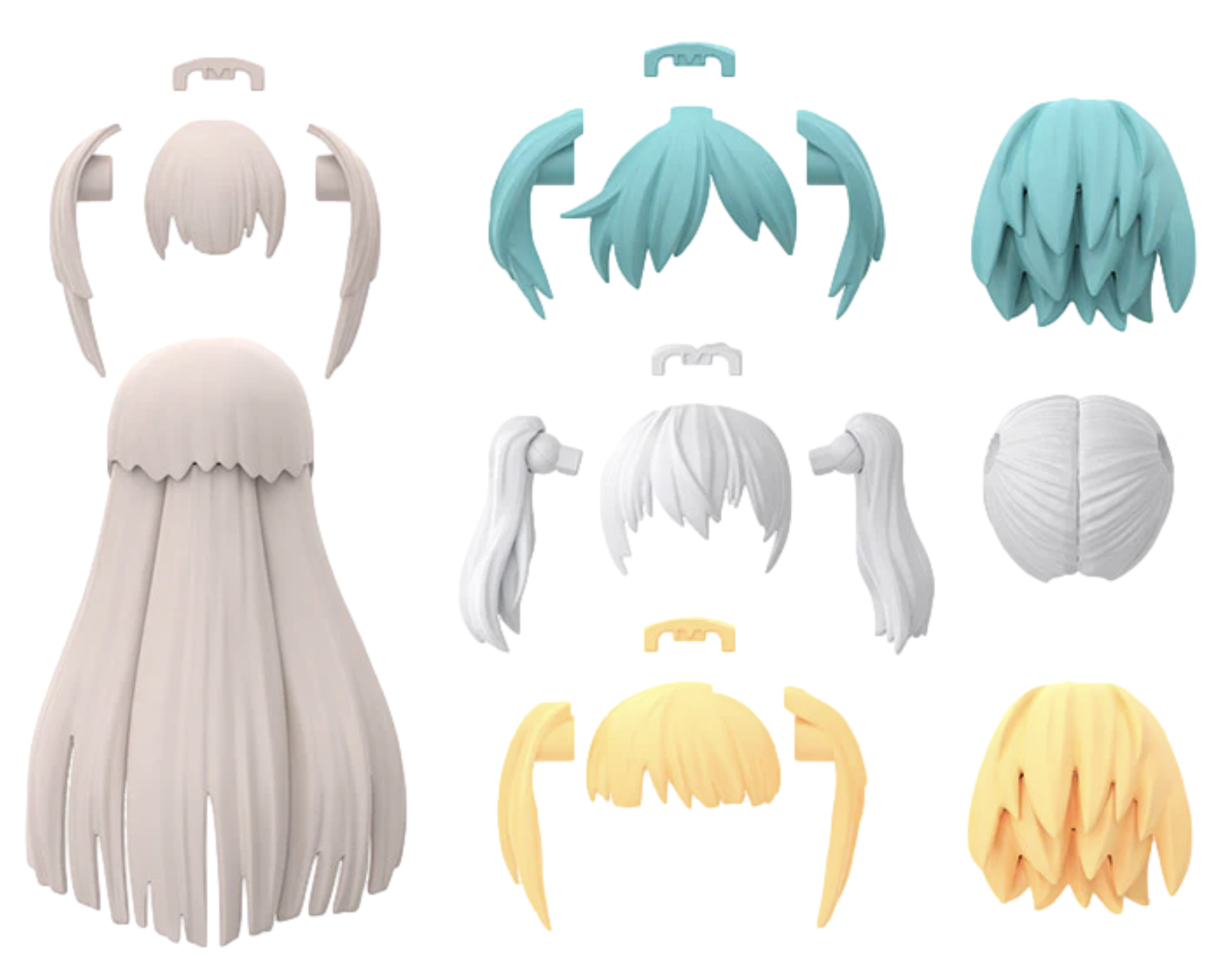Expand your creative options with this exciting set of optional hairstyle parts for your 30 MINUTES SISTERS models! Designed for easy compatibility, these parts let you mix and match to create the perfect hairstyle and hair color that suits your custom character’s personality and style.