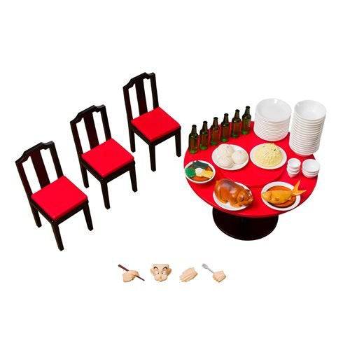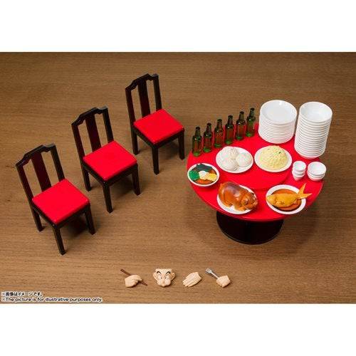 Re-create dynamic dining scenes with Son Goku's Hara Hachibunme restaurant set! Designed for the S.H.Figuarts series, it includes a table, chairs, and plenty of food dishes and drinks -- an instant party, ready for your tabletop or display! Chopsticks and forks are included, too, expanding your posing possibilities! The Dragon Ball Z Son Goku's Harahachibunme Set S.H.Figuarts includes background sheet, furniture set, food set, and tableware set.