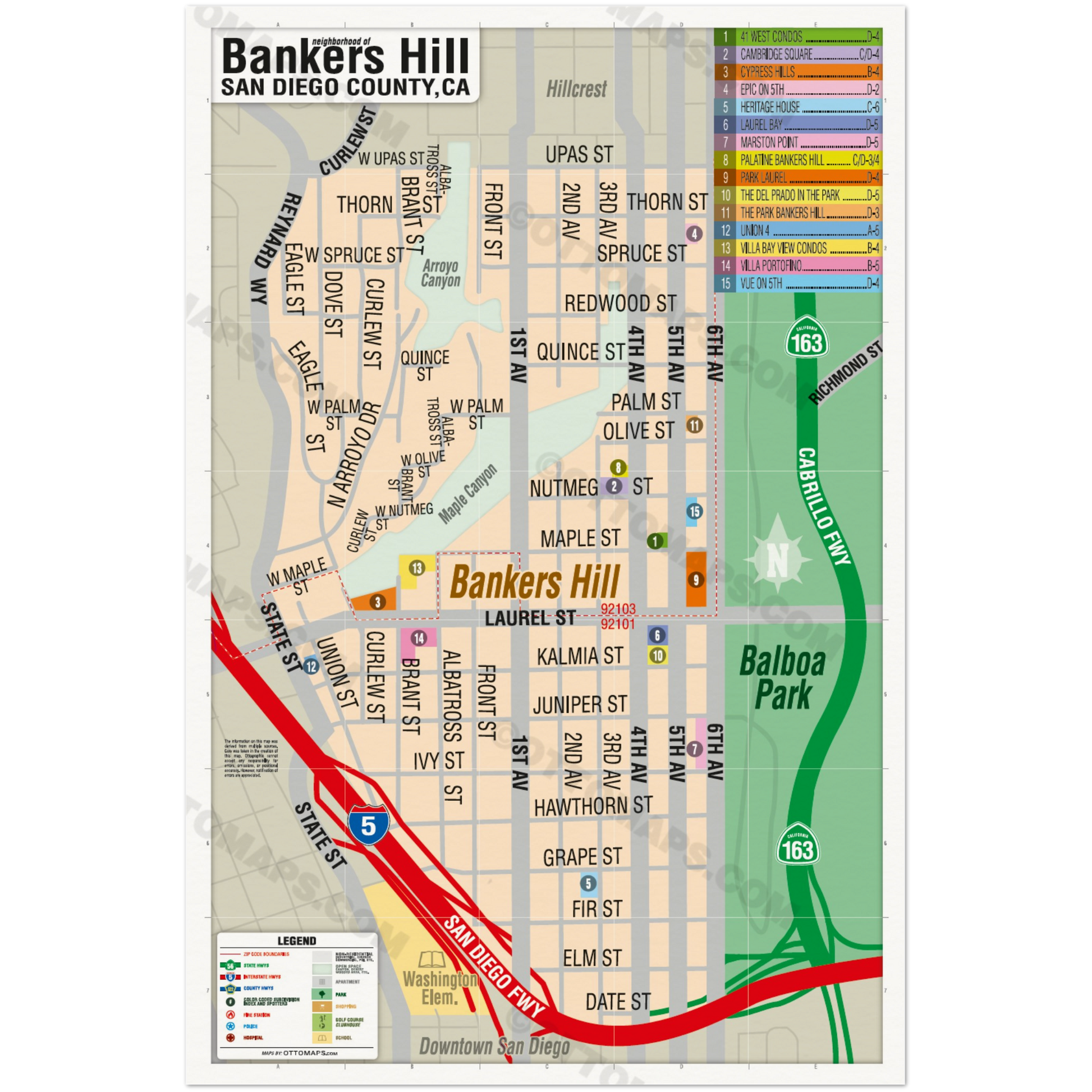 Bankers Hill Map, San Diego, CA - POSTER PRINTS