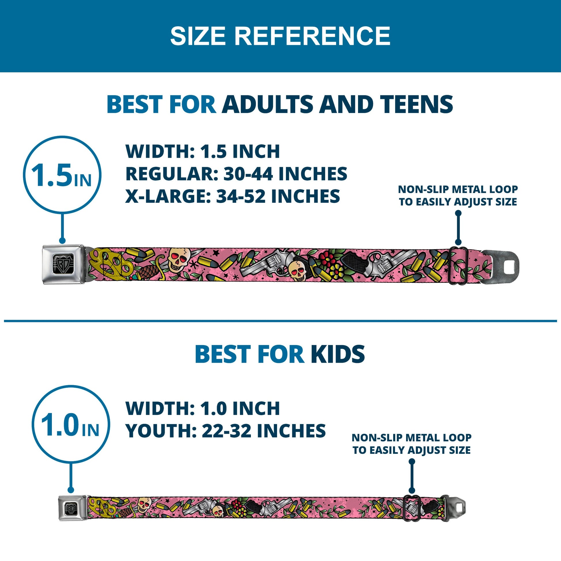 Buckle-Down's iconic Seatbelt Belt is a cool, smart, and exciting blend of fashion and function. Always a conversation starter, our Seatbelt Belt adjusts to perfectly fit your waist while showcasing your unique sense of style. Our Seatbelt Belts are made with authentic automotive style seatbelt buckles making them easy to open and close at the push of a button. Our adult-size Seatbelt Belts are 1.5 inches wide and our kid-sized Seatbelt belts are 1.0 inch wide. This product is Handcrafted in USA by Buckle-Down Inc. and officially licensed by Buckle-Down.
