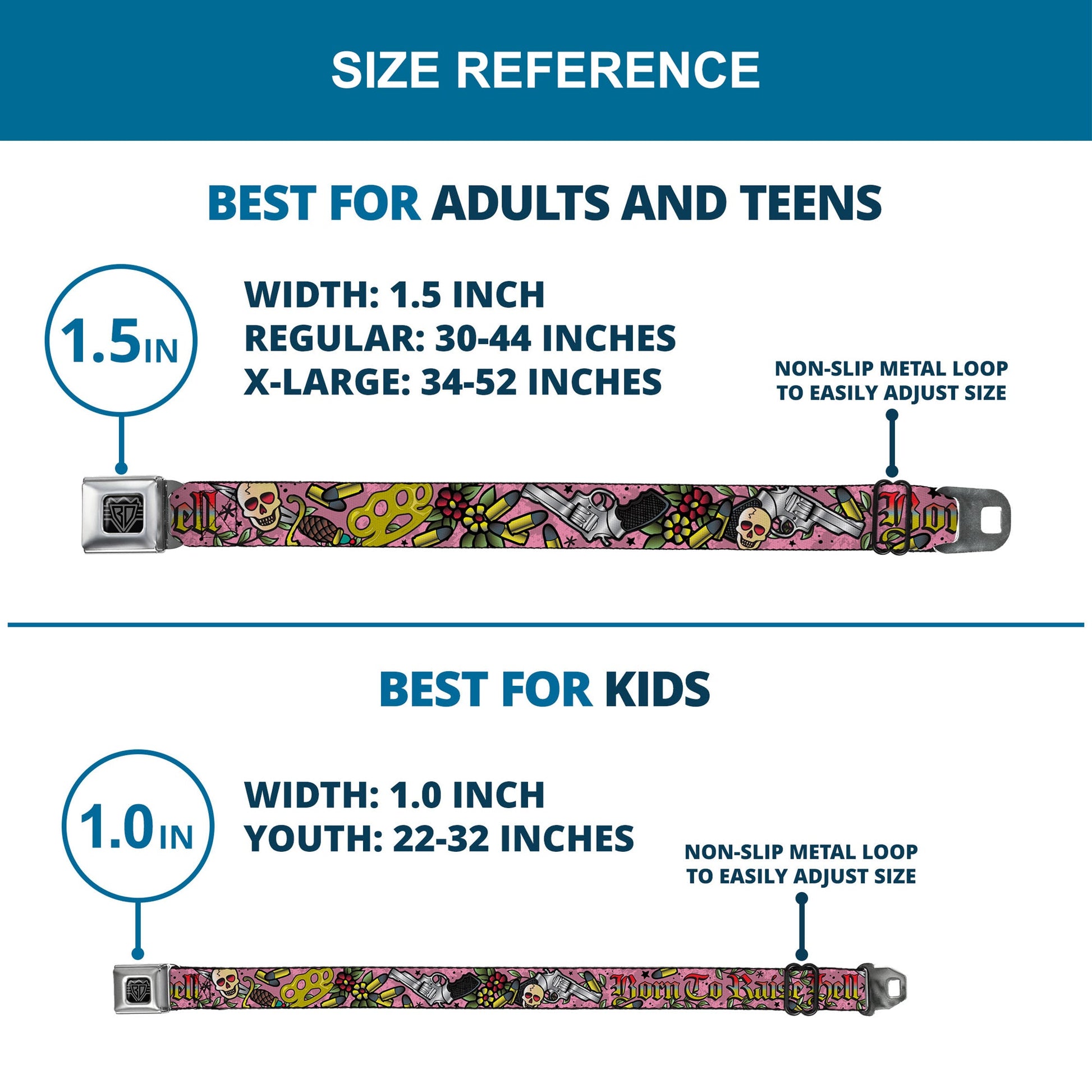 BD Wings Logo CLOSE-UP Full Color Black Silver Seatbelt Belt - Born to Raise Hell Pink Webbing