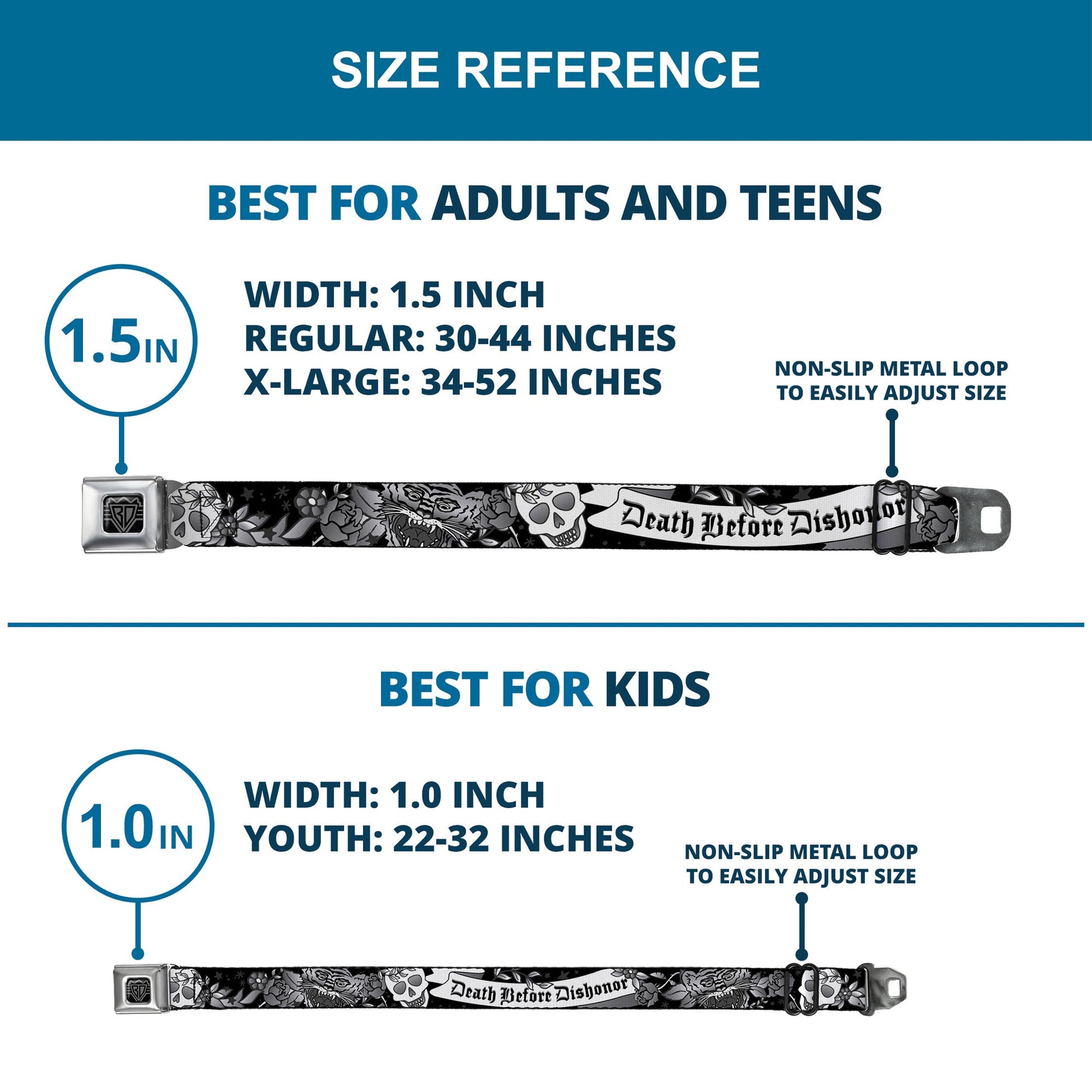 BD Wings Logo CLOSE-UP Full Color Black Silver Seatbelt Belt - Death Before Dishonor Black/White Webbing