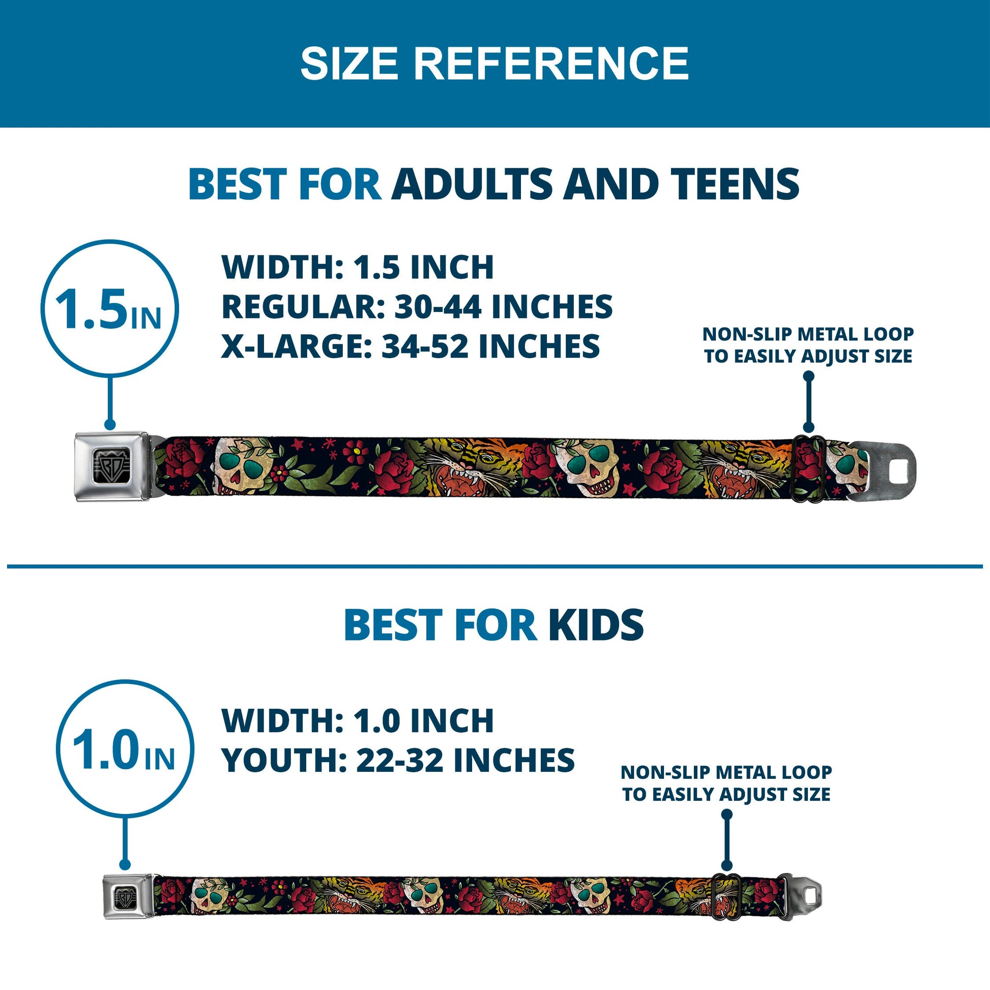 Buckle-Down's iconic Seatbelt Belt is a cool, smart, and exciting blend of fashion and function. Always a conversation starter, our Seatbelt Belt adjusts to perfectly fit your waist while showcasing your unique sense of style. Our Seatbelt Belts are made with authentic automotive style seatbelt buckles making them easy to open and close at the push of a button. Our adult-size Seatbelt Belts are 1.5 inches wide and our kid-sized Seatbelt belts are 1.0 inch wide. This product is Handcrafted in USA by Buckle-Down Inc. and officially licensed by Buckle-Down.
