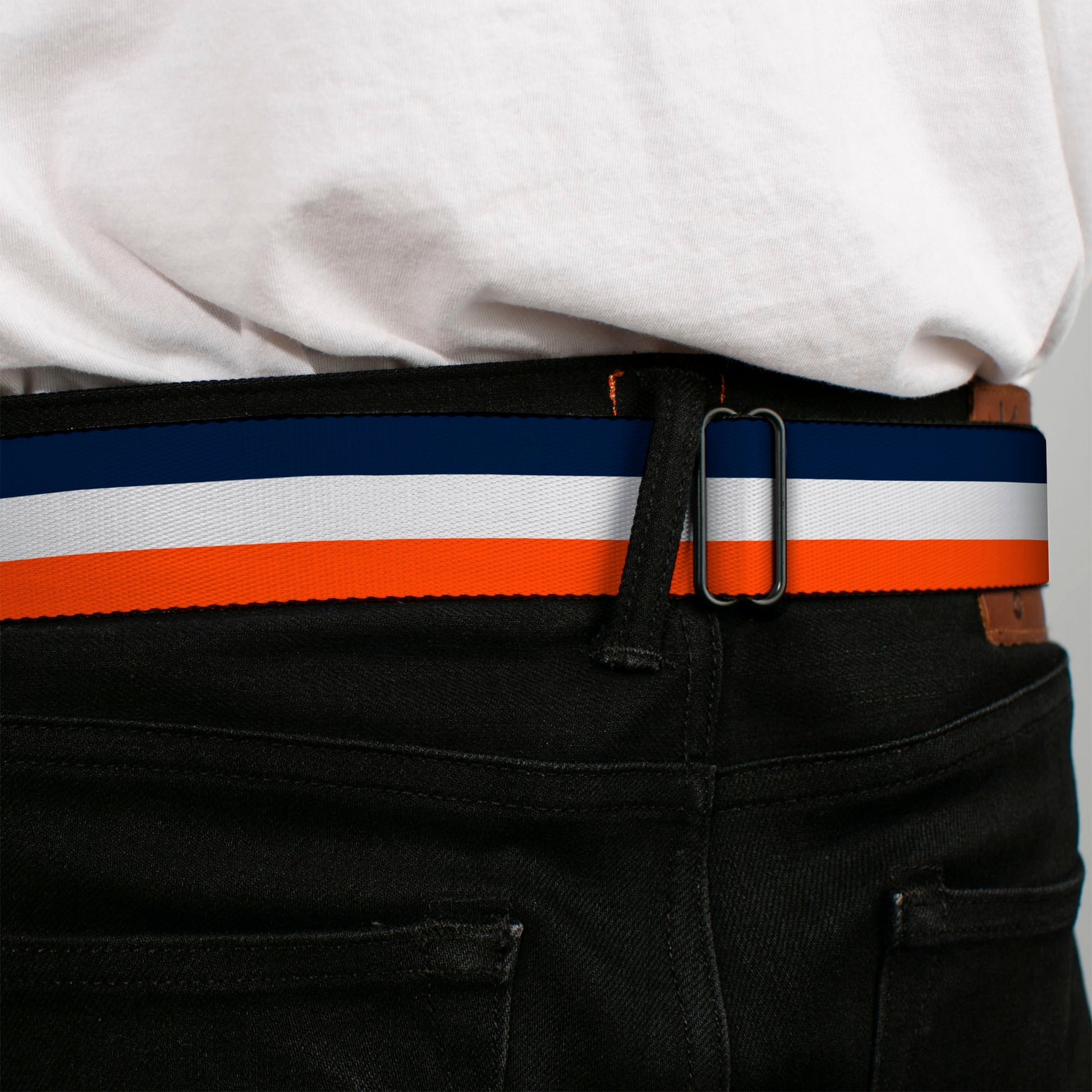 BD Wings Logo CLOSE-UP Full Color Black Silver Seatbelt Belt - Stripe Navy/White/Orange Webbing