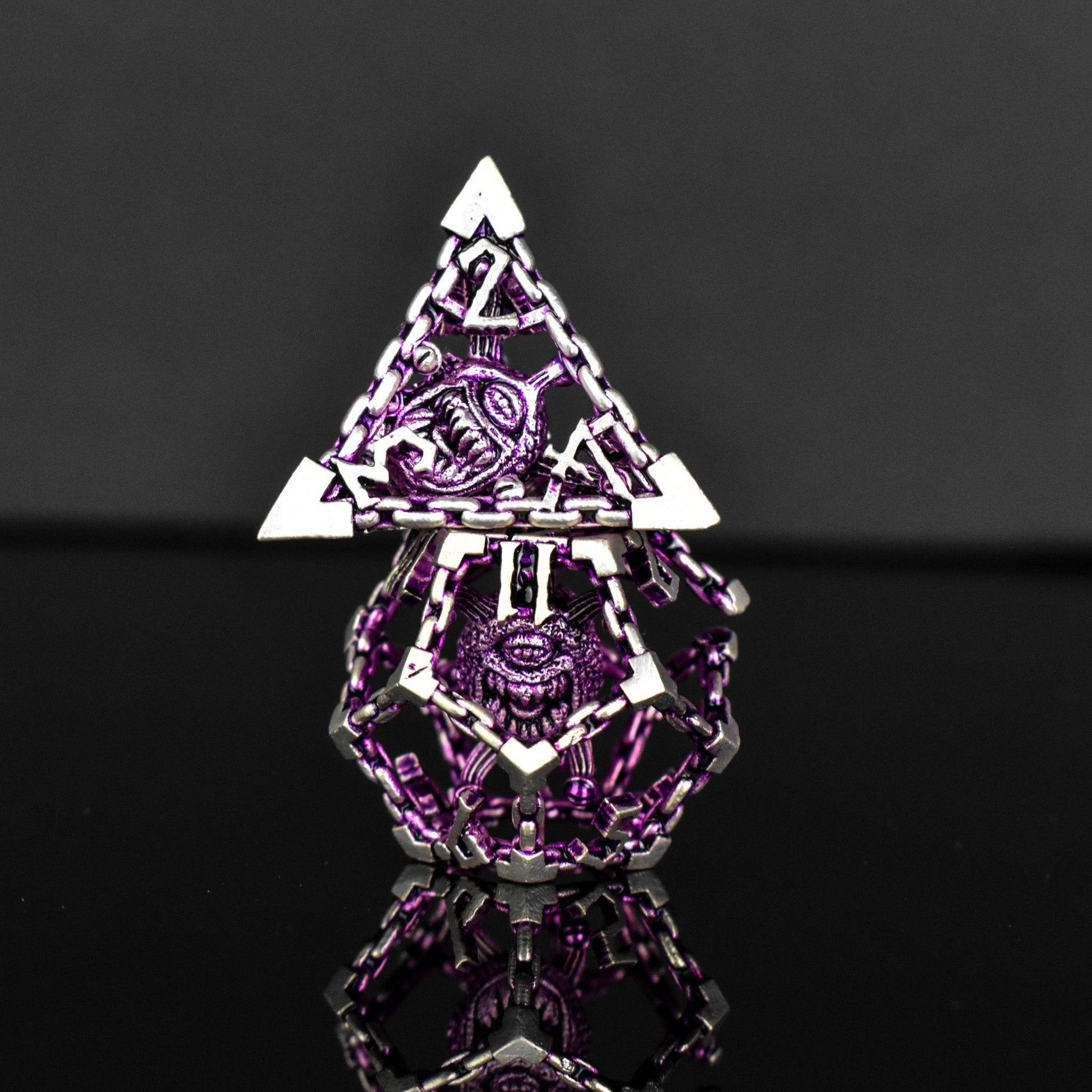 Beholder's Gates Hollow Metal Dice Set - Purple and Silver