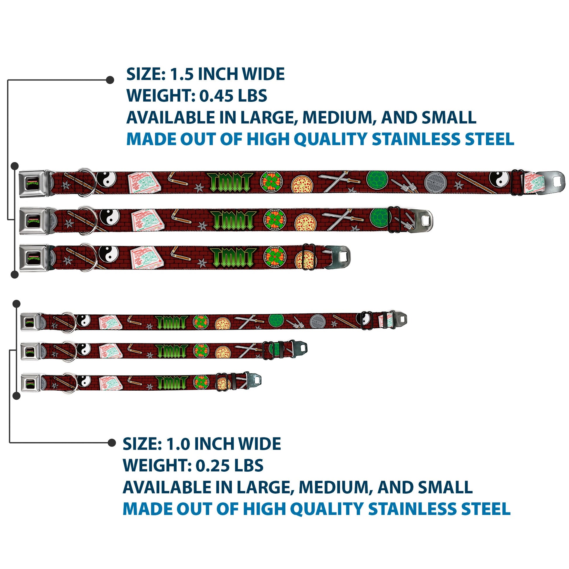Classic TEENAGE MUTANT NINJA TURTLES Logo Seatbelt Buckle Collar - Classic TMNT Gear/Elements Brick Wall