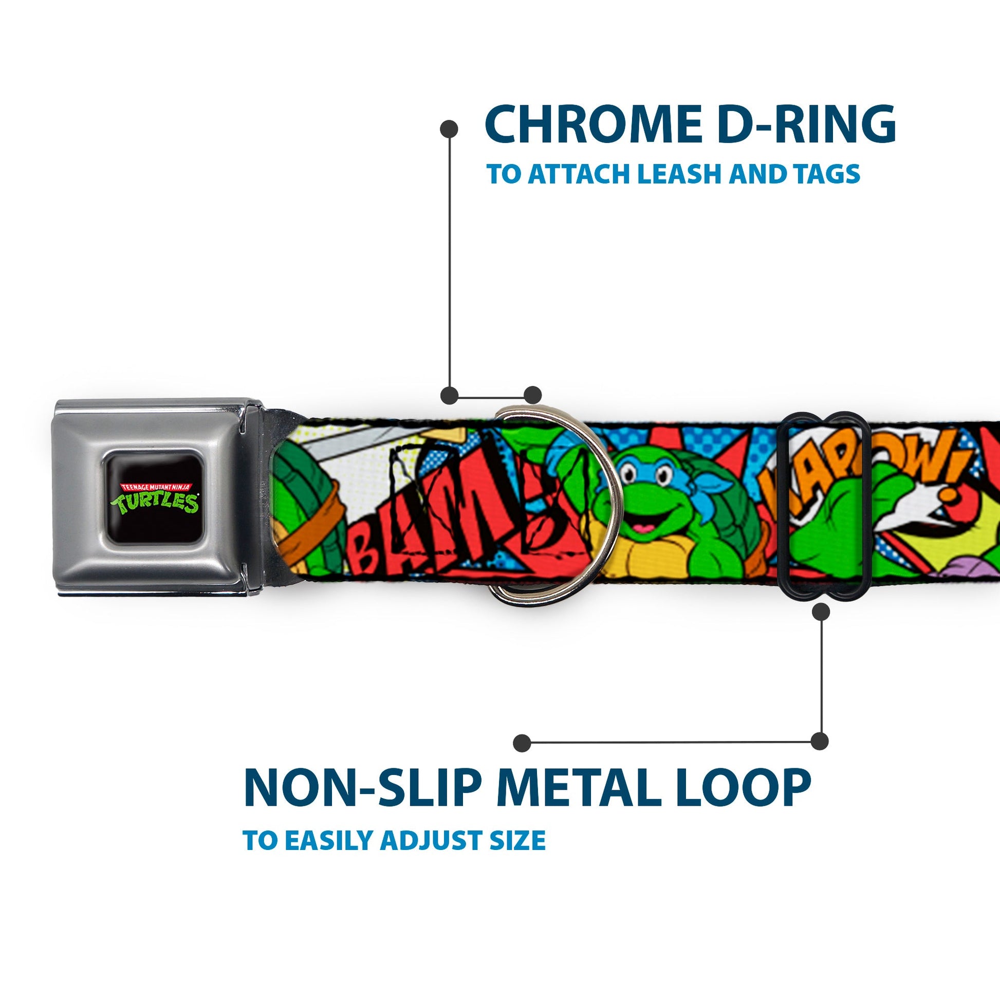 Classic TMNT Logo Full Color Seatbelt Buckle Collar - Classic Teenage Mutant Ninja Turtles Action Poses/Action Bubbles Dots Blues