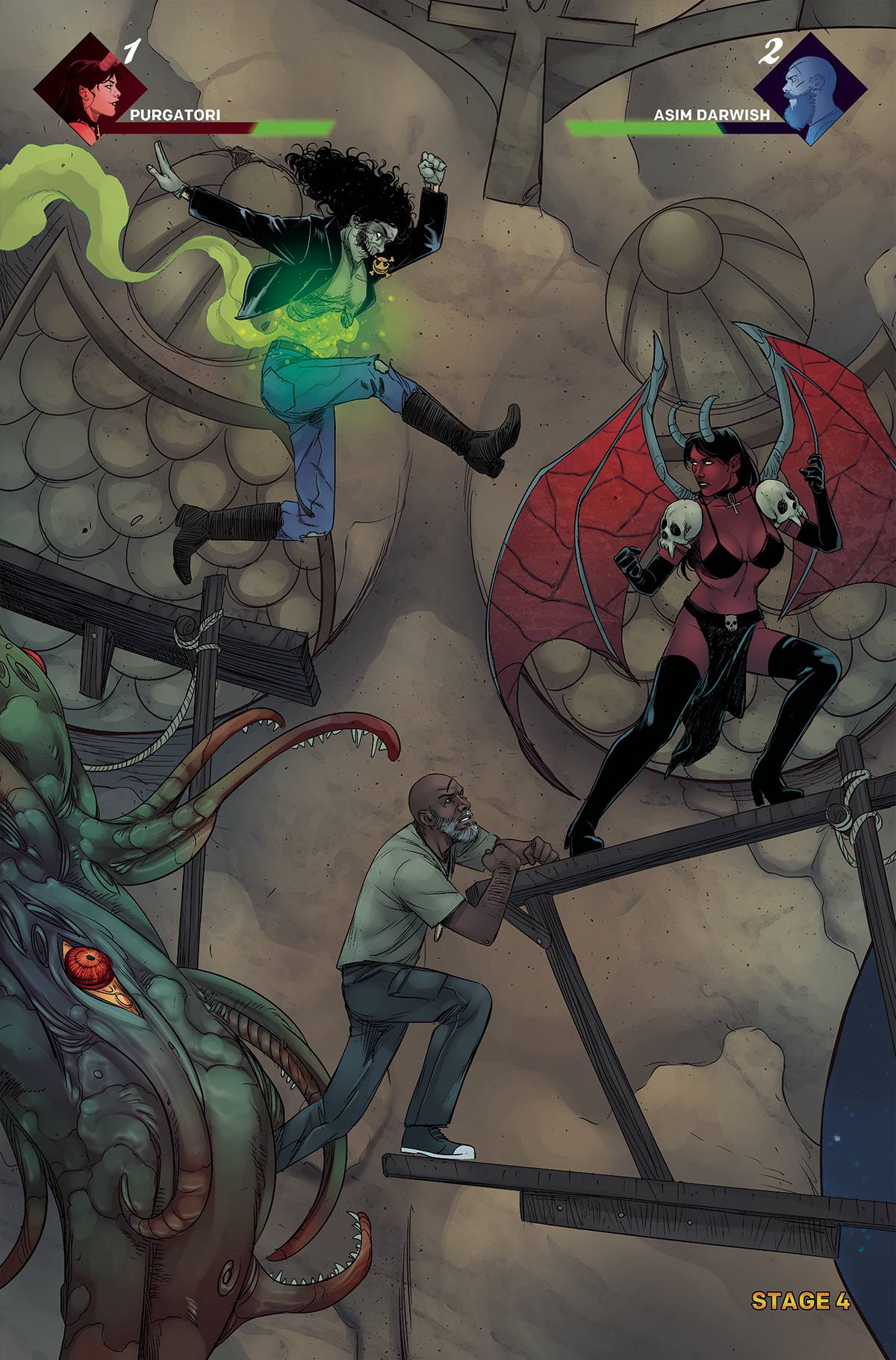No more running. No more hiding. It's time to fight- naked beast-style. It's the fight(s) of the century! Asim Darwish vs Vampirella! Evil Ernie vs. Pantha! Nyx and Draculina vs Lilith! Purgatori vs…Purgatori? Let's call this one 'Scarred in the Garden.' No- wait - 'Poke Out My Eyes in Paradise.' No- no. How about: Purgatori Must Die: Bleedin' in Eden! Whatever we end up calling it- you know this one's going to be wild!