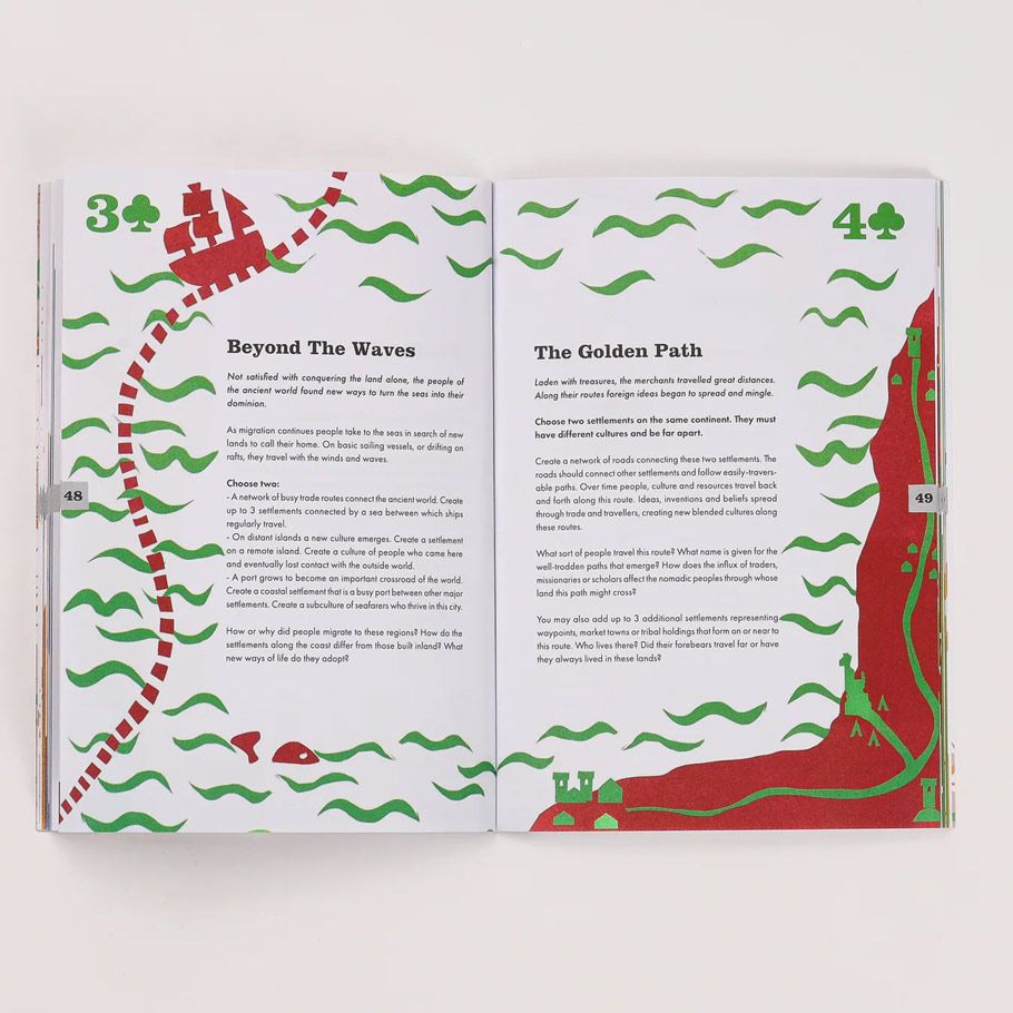 Foundations is based around card based, storytelling prompts informed by real-world history, geography and anthropology to help create worlds which are unpredictable, unique and grounded in the natural world. The decisions you make in the game will build on each other, gradually crafting an intertwined and fleshed out world based on your choices.