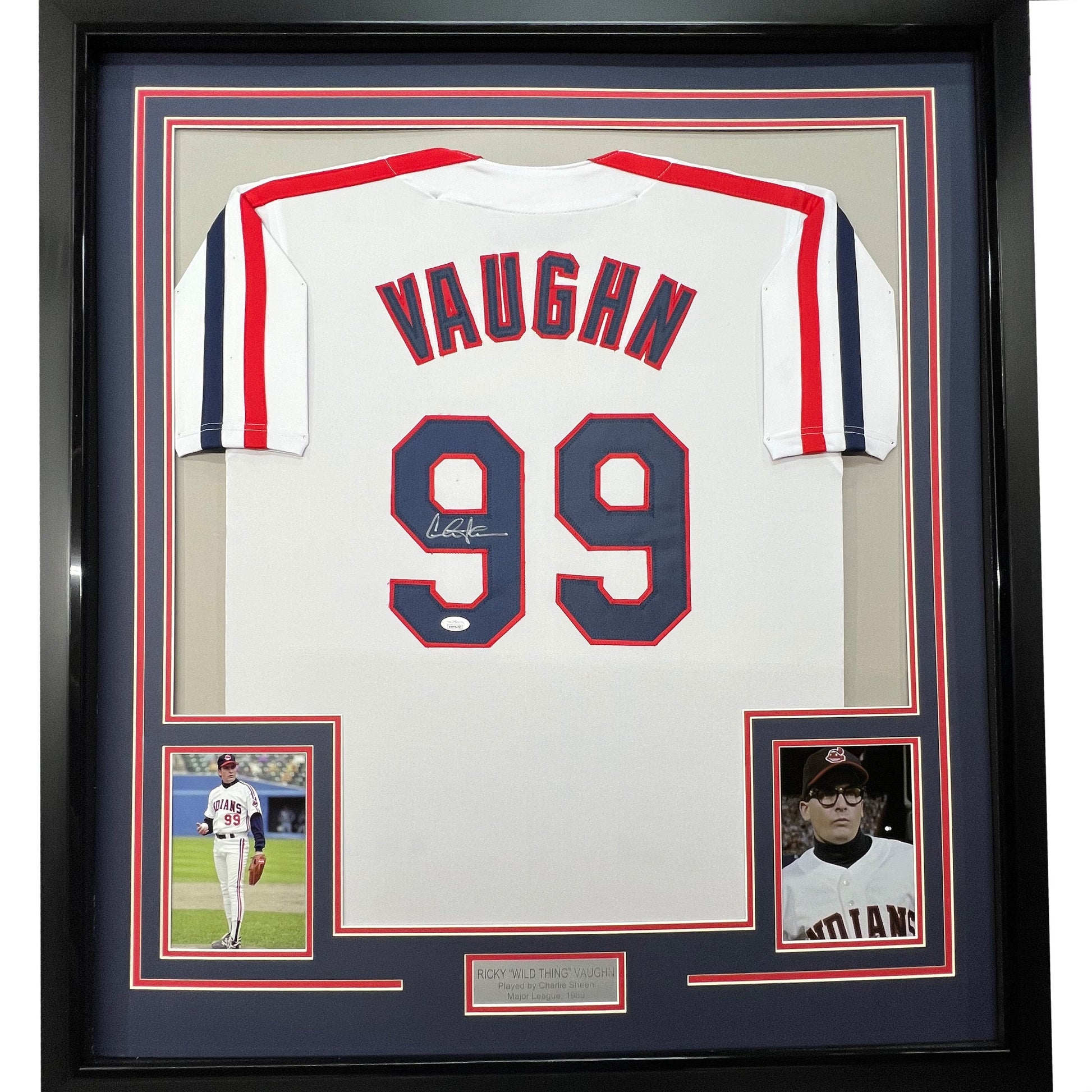 Framed Autographed/Signed Charlie Sheen 35x39 Wild Thing Ricky Vaughn Major League Movie Baseball Jersey JSA COA